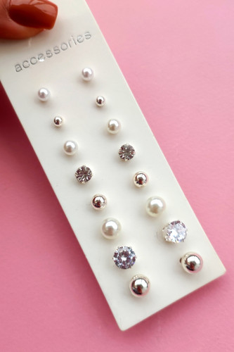 پک گوشواره میخی هشت جفتی اورجینال استیل، مروارید و نگیندار