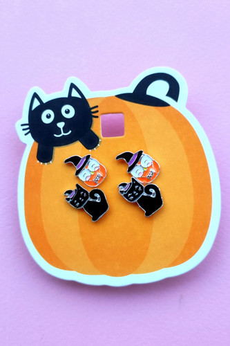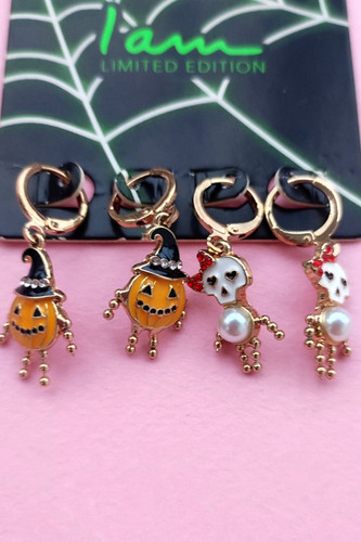 پک گوشواره اورجینال دوجفتی فانتزی هالووینی لیمیتد ادیشن اسکلت و کدو نگینکاری شده رنگ ثابت