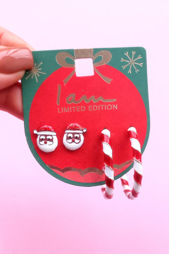پک گوشواره اورجینال دوجفتی فانتزی آبنبات کریسمس و بابانوئل