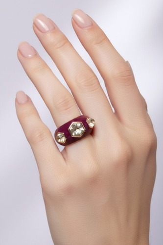 انگشتر زنانه اورجینال رنگ زرشکی نگین برجسته