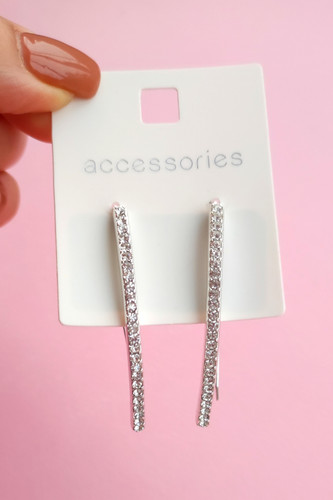 گوشواره اورجینال زنانه مدرن خطی رنگ نقرهای تمام نگین