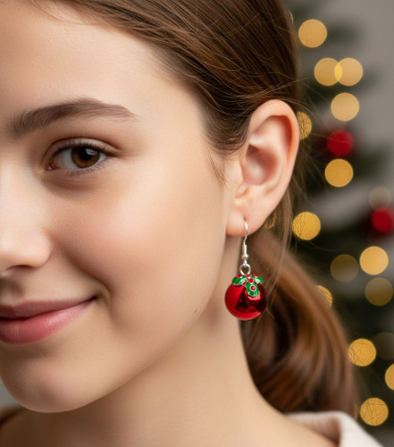 گوشواره اورجینال فانتزی مدل گوی کریسمسی قرمز از تولیدات لیمیتد ادیشن