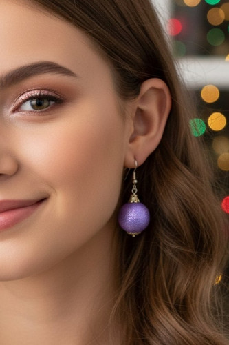 گوشواره اورجینال آویز فانتزی مدل گوی کریسمش رنگ بنفش