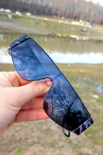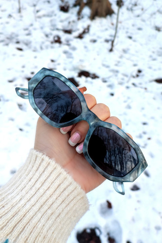 عینک آفتابی اورجینال یونیسکس با فریم خاص چندضلعی باریک و رنگ خاص طوسی آبی مشکی ابروبادی