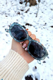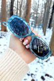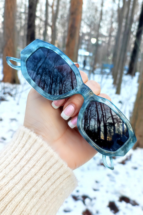 عینک آفتابی اورجینال یونیسکس با فریم خاص چندضلعی باریک و رنگ خاص طوسی آبی مشکی ابروبادی