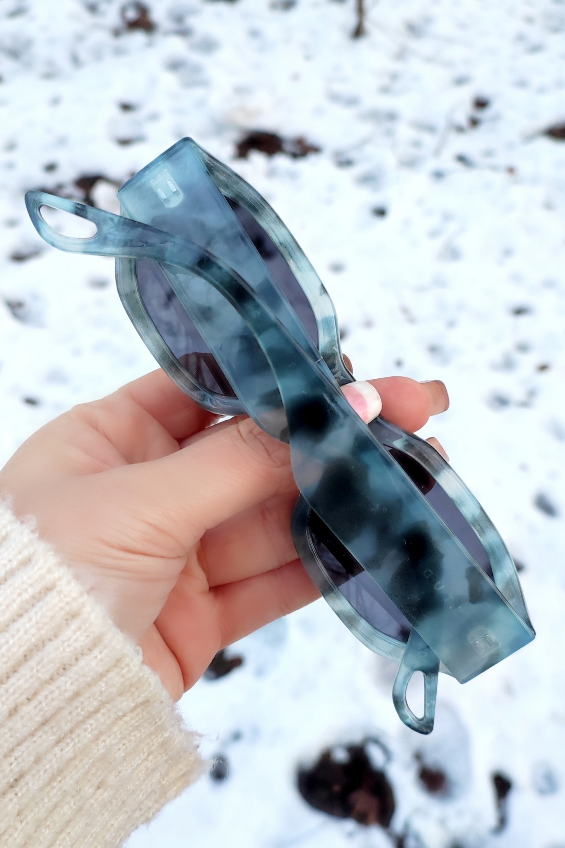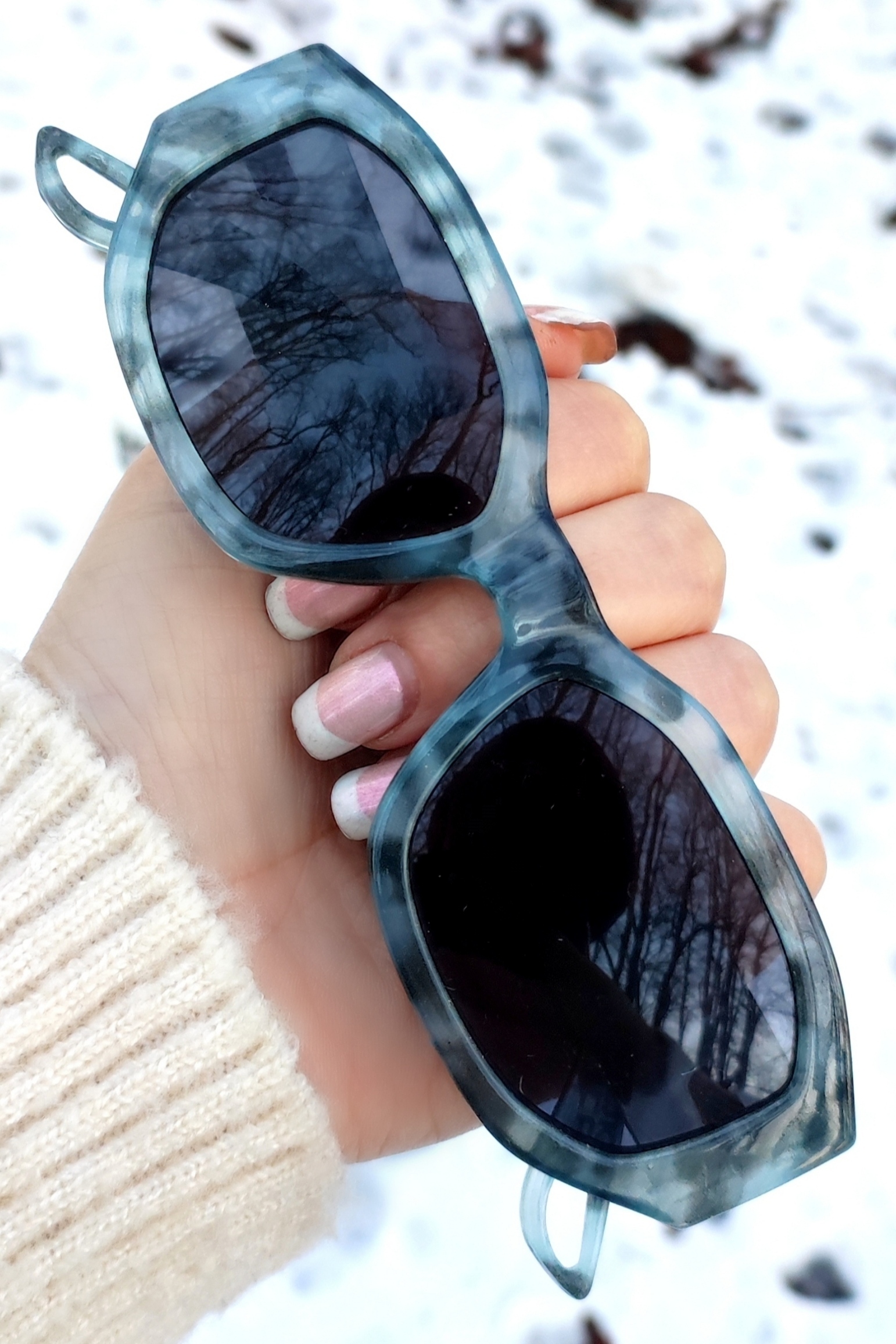 عینک آفتابی اورجینال یونیسکس با فریم خاص چندضلعی باریک و رنگ خاص طوسی آبی مشکی ابروبادی