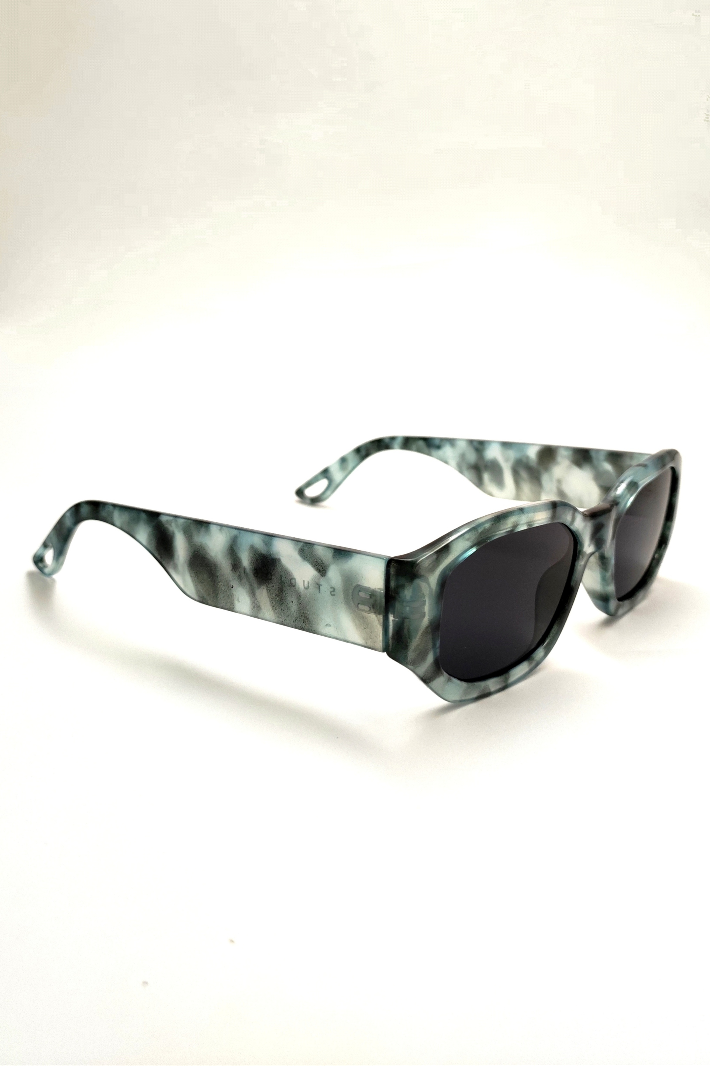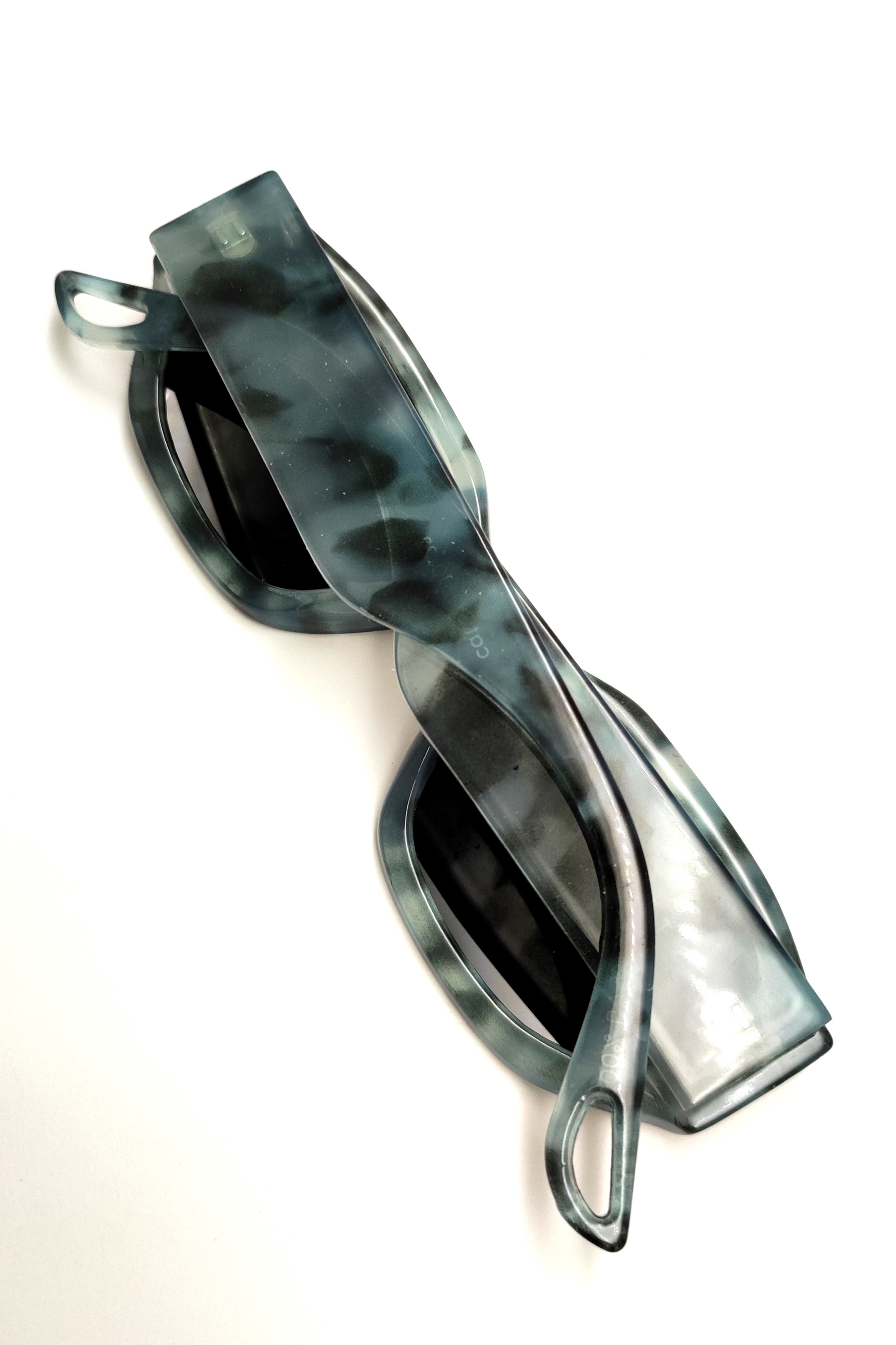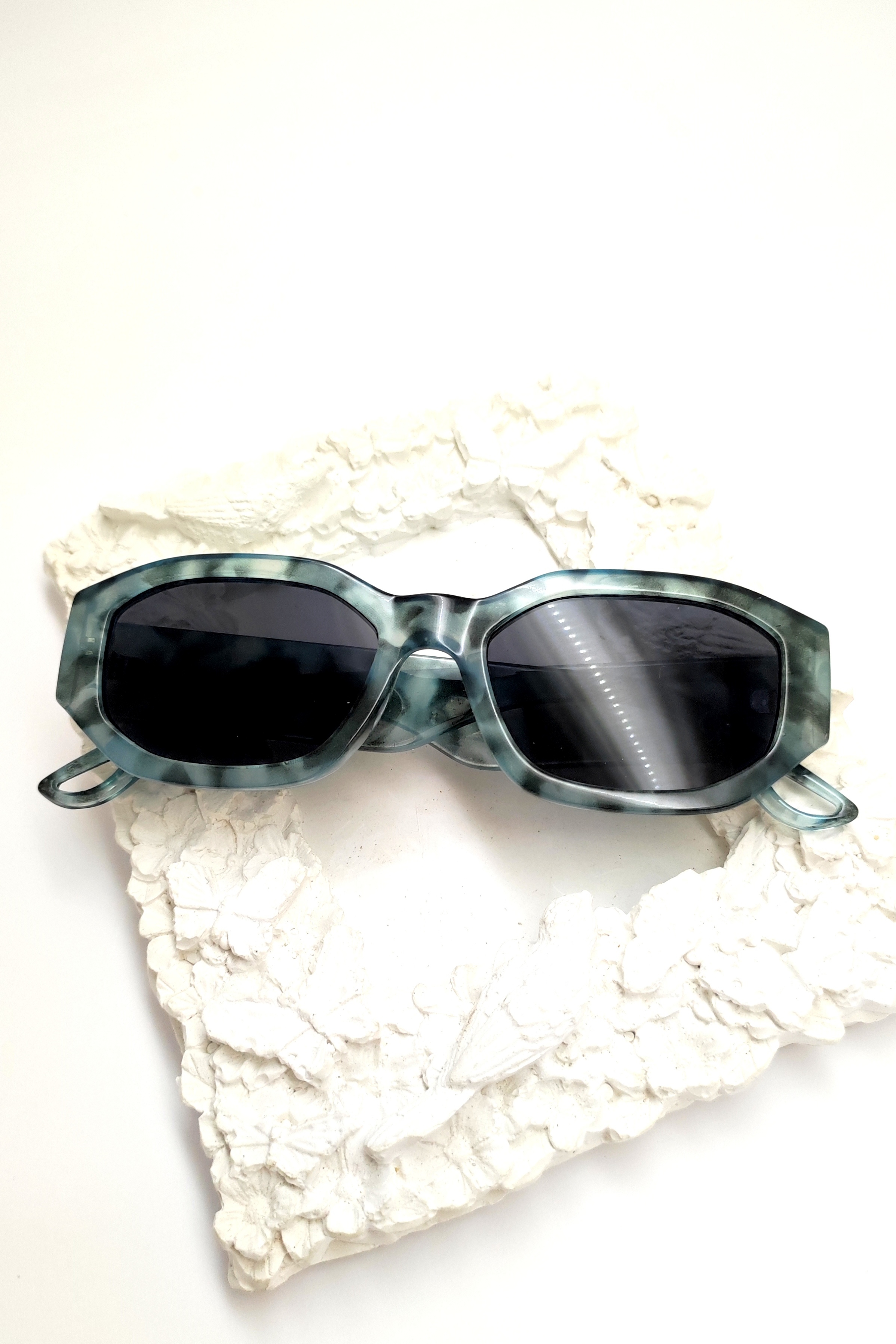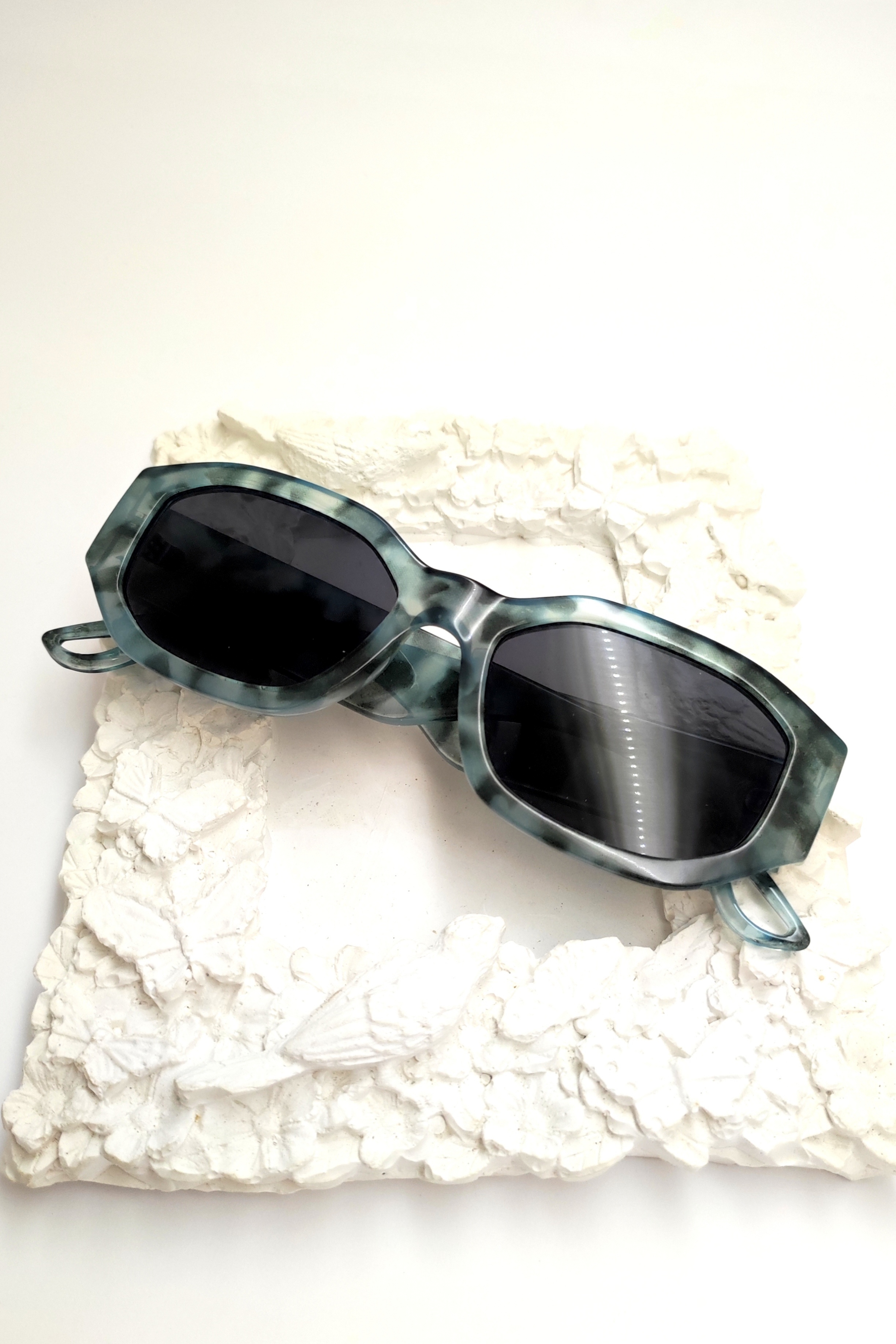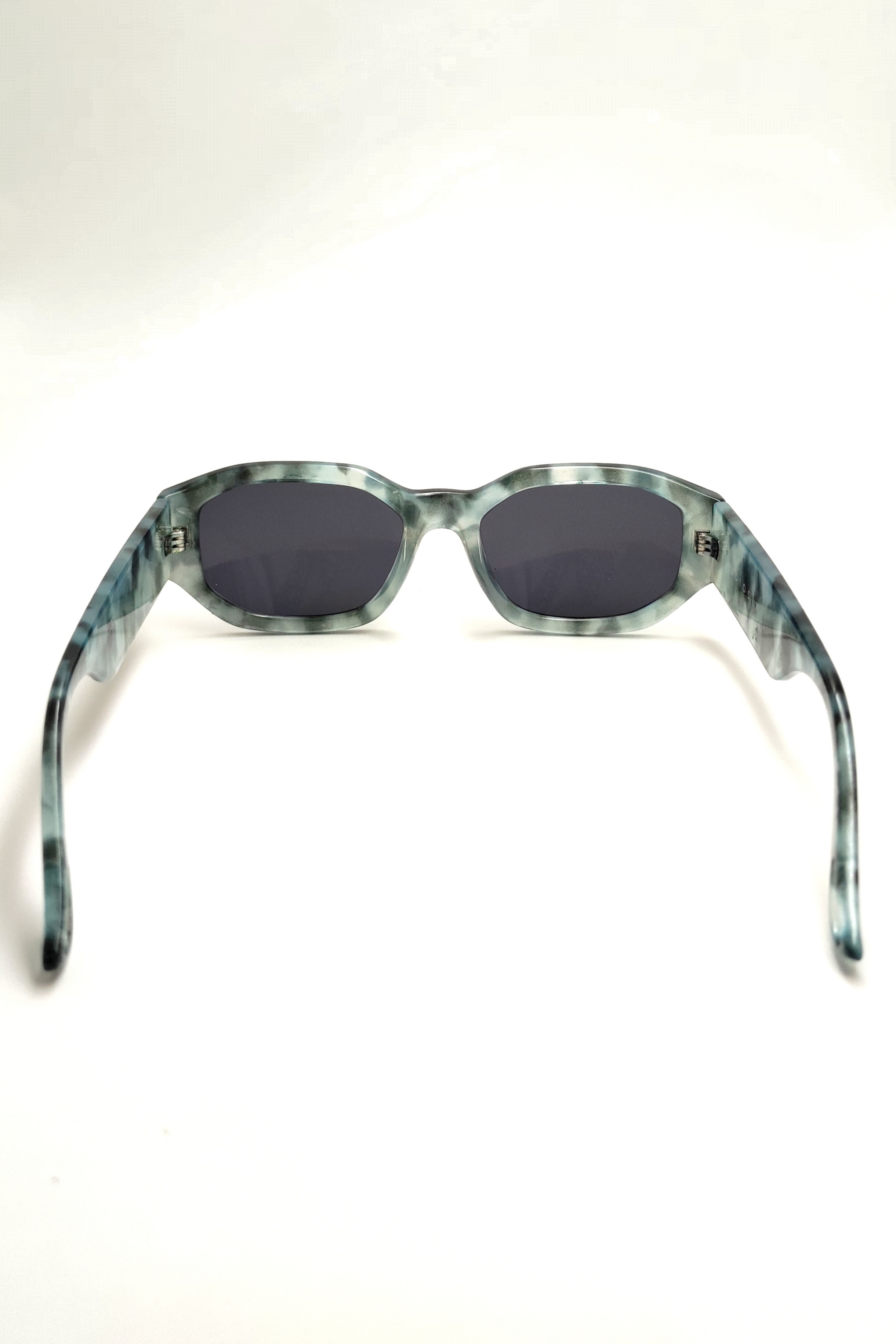 عینک آفتابی اورجینال یونیسکس با فریم خاص چندضلعی باریک و رنگ خاص طوسی تکاوری آبی مشکی ابروبادی