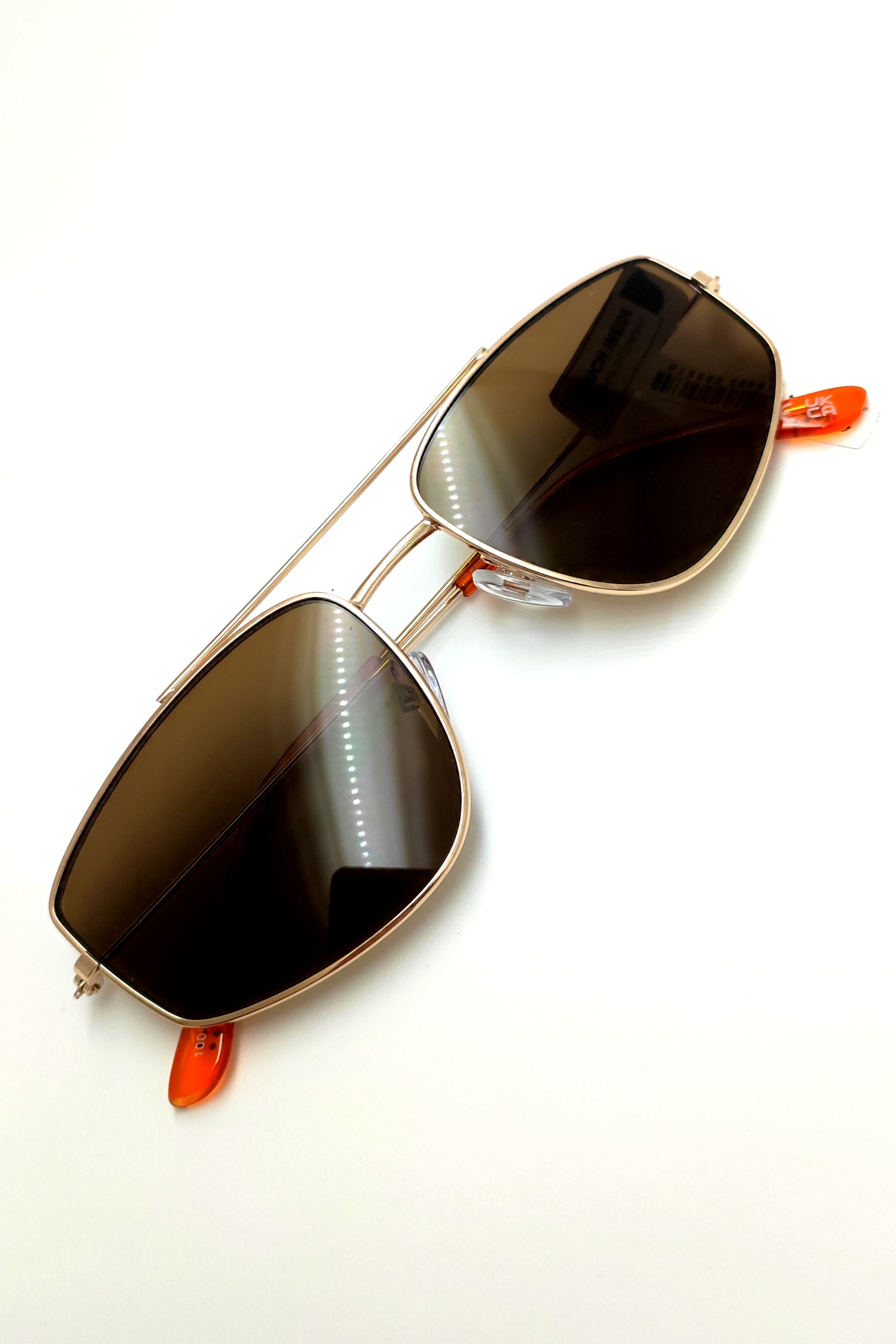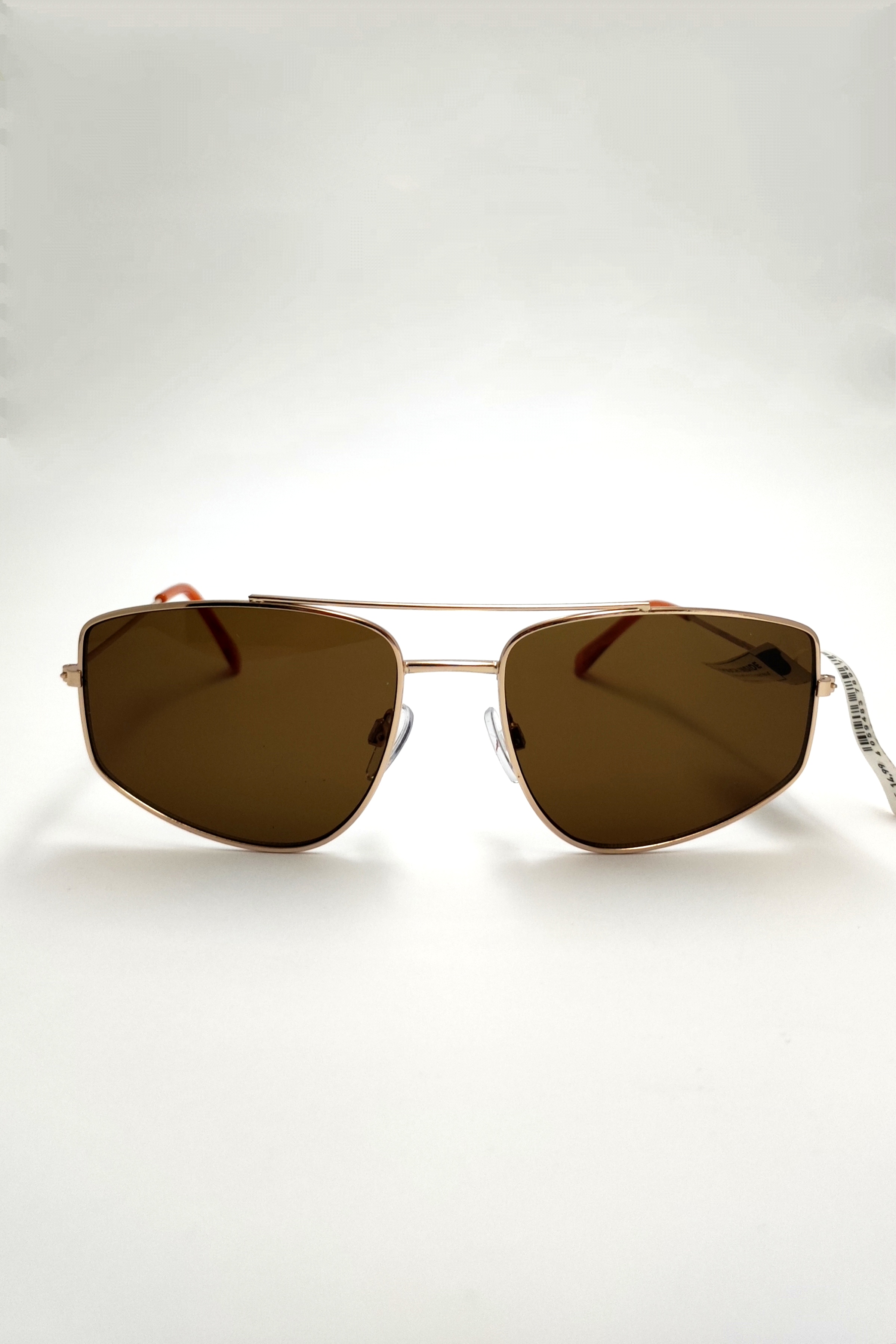 عینک آفتابی یونیسکس اورجینال فریم مستطیل روباهی فلزی عدسی قهوه‌ای