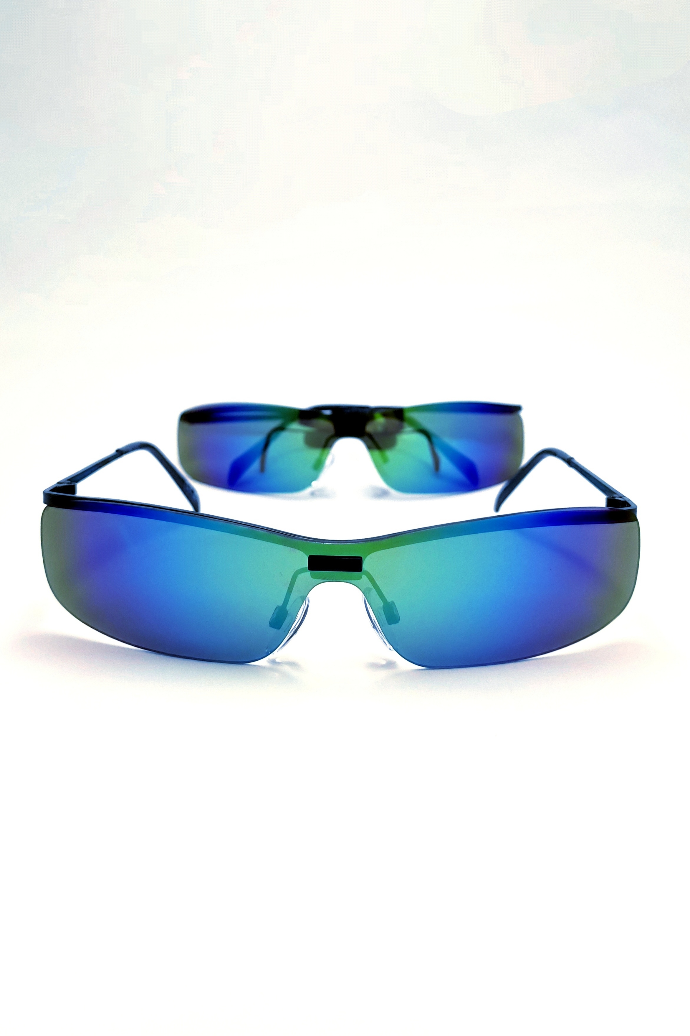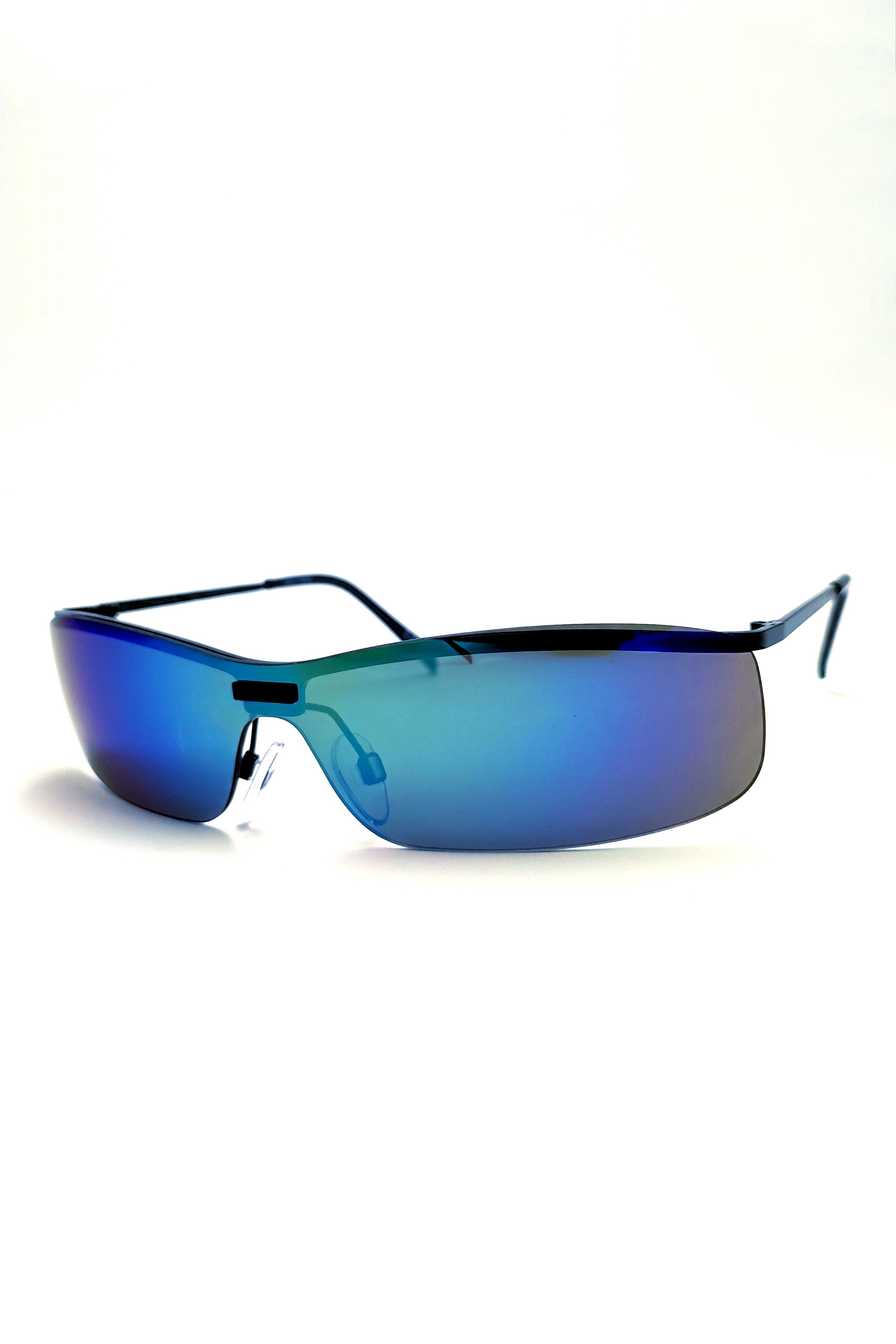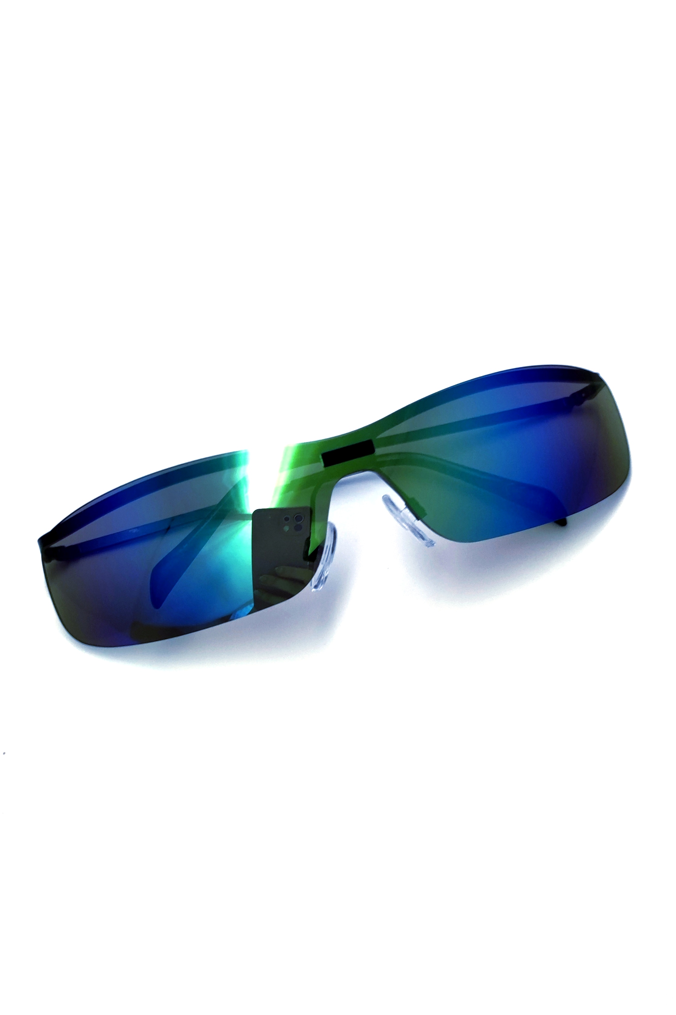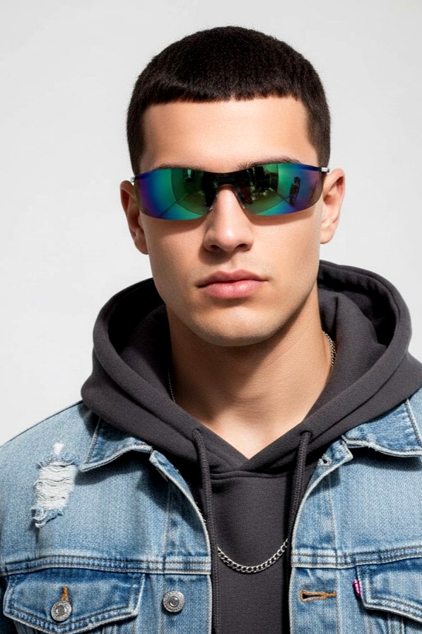 عینک آفتابی و برف اورجینال یونیسکس مدرن مدل فرازمینی عدسی آینه‌ای آبی کروم رنگین‌کمانی