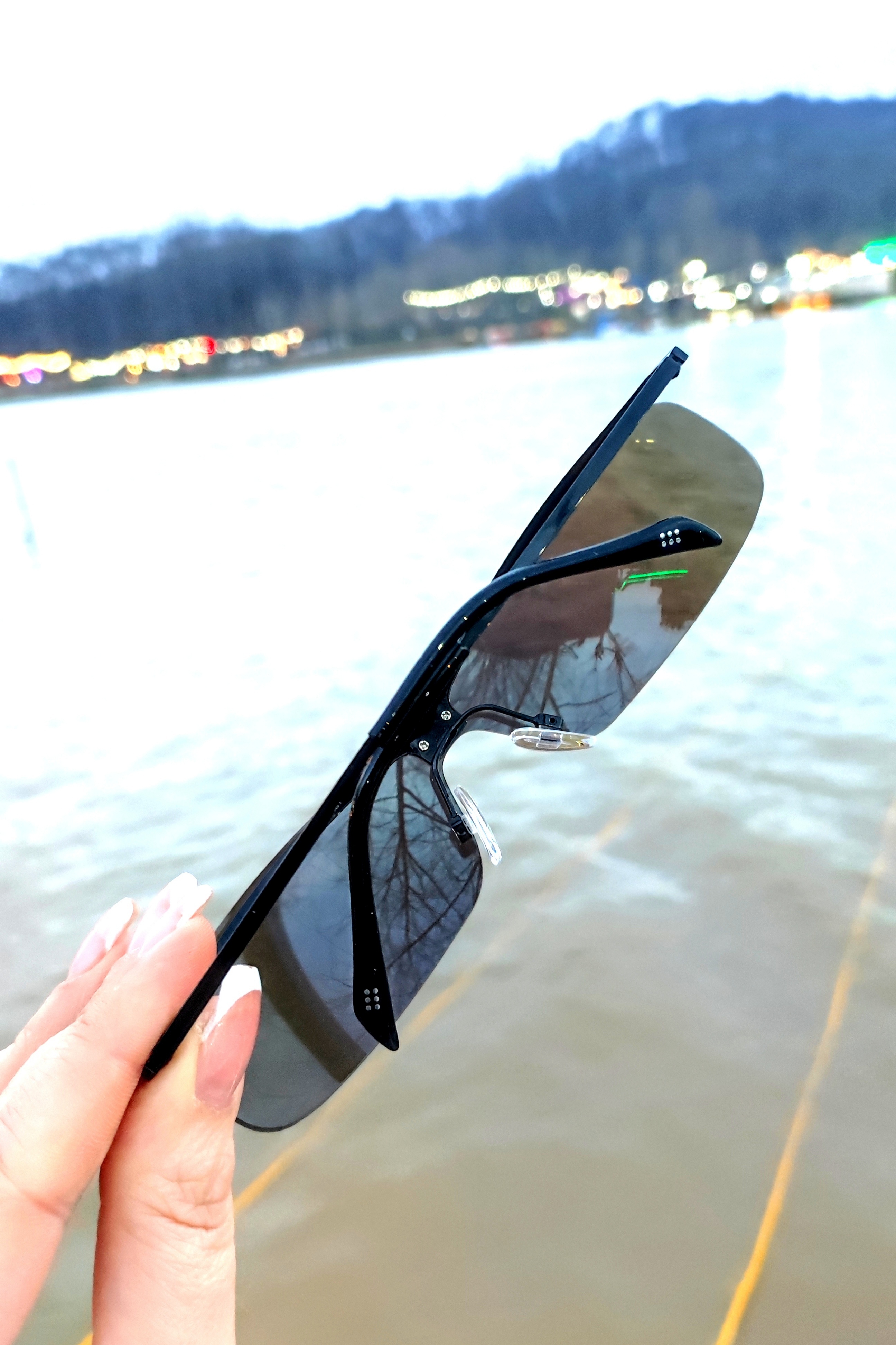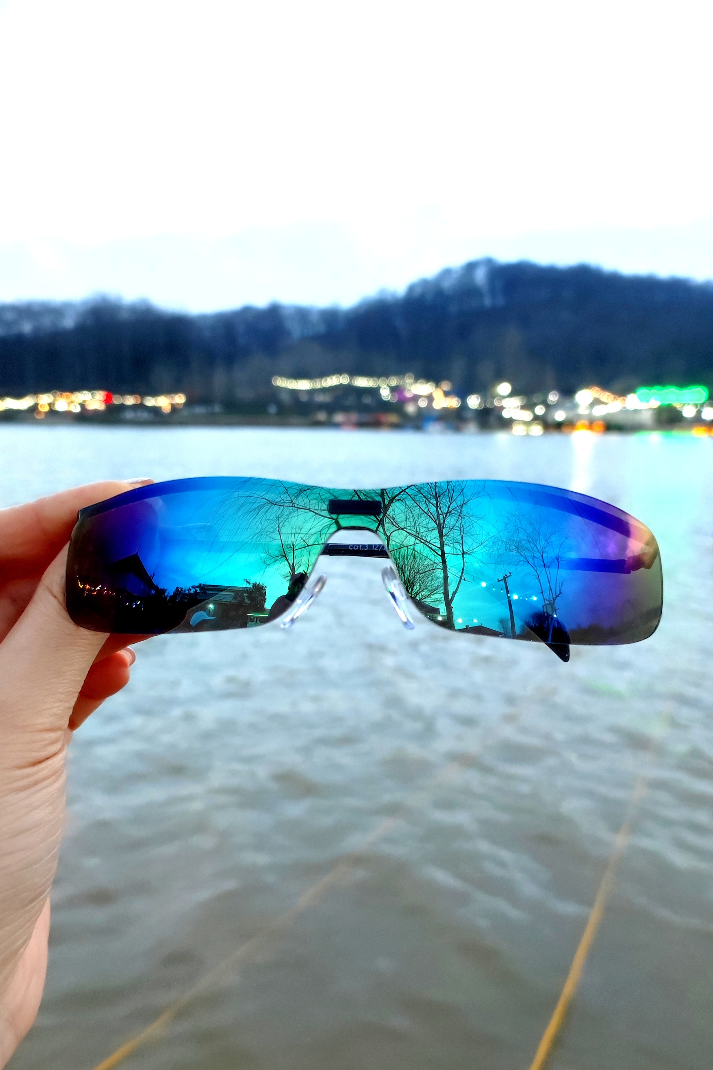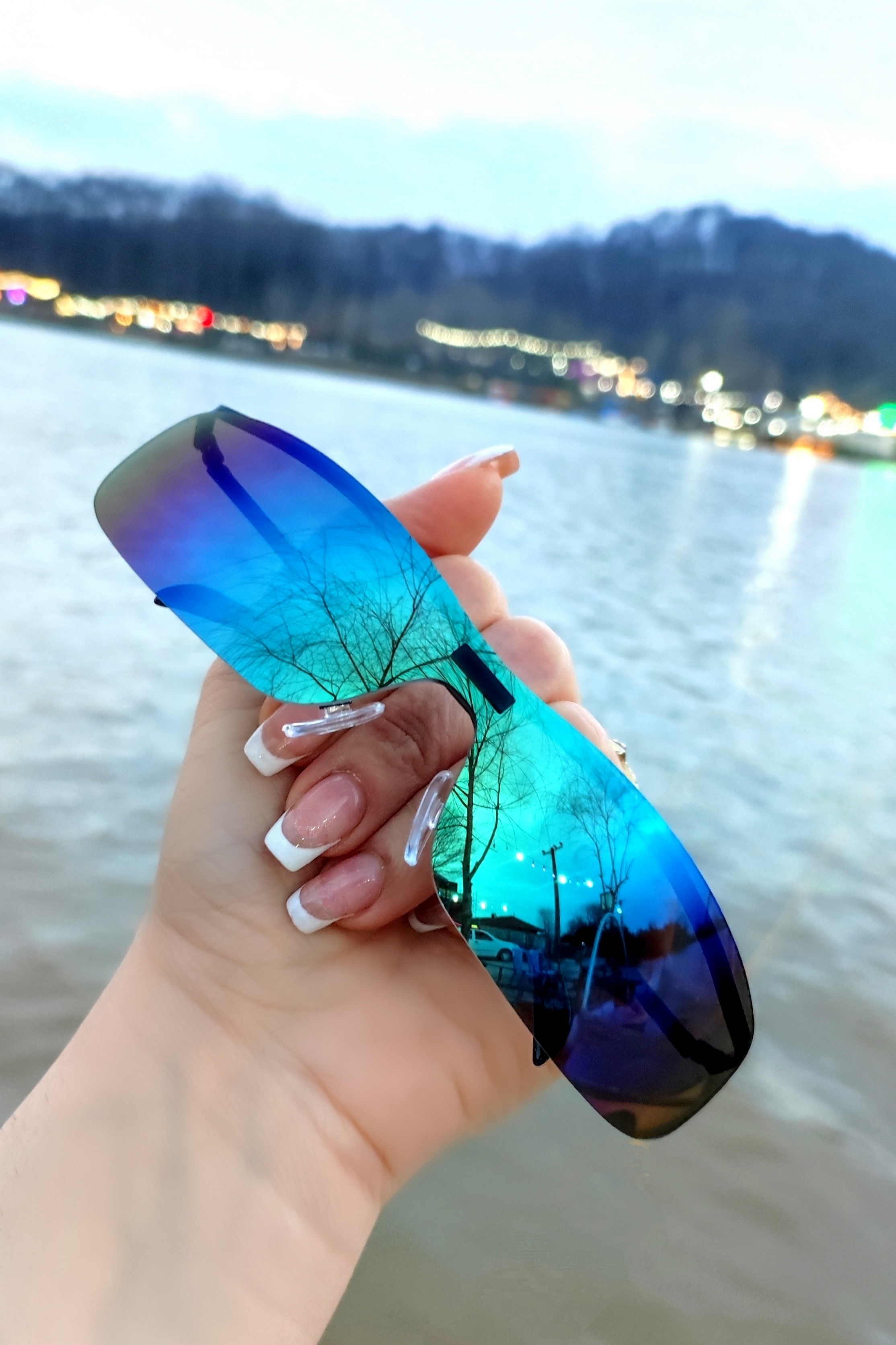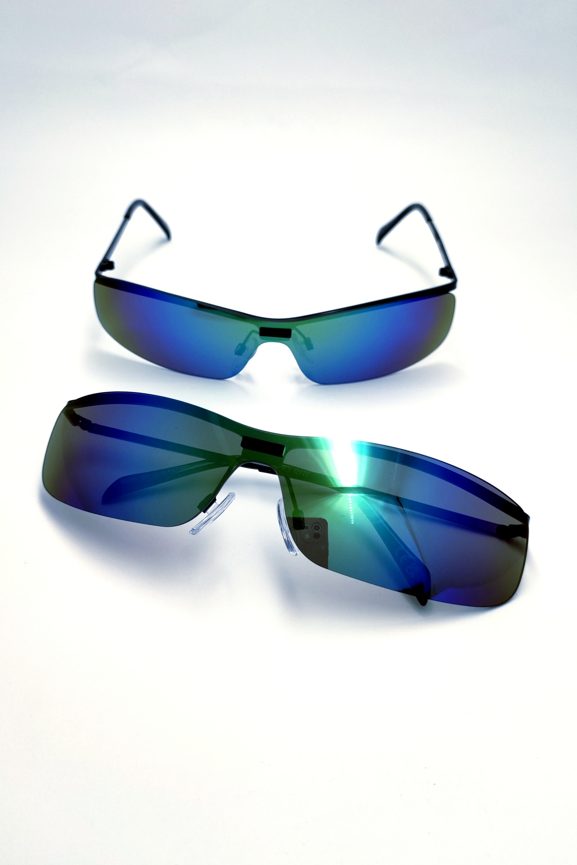 عینک آفتابی و برف اورجینال یونیسکس مدرن مدل فرازمینی عدسی آینه‌ای آبی کروم رنگین‌کمانی