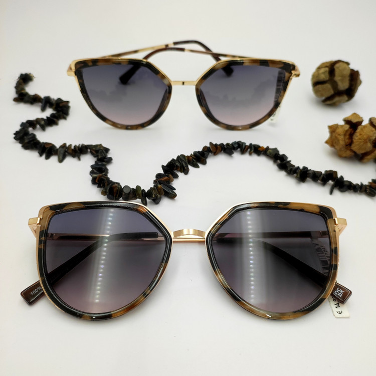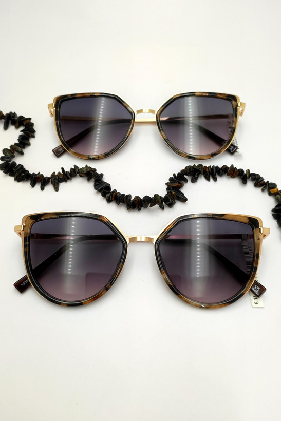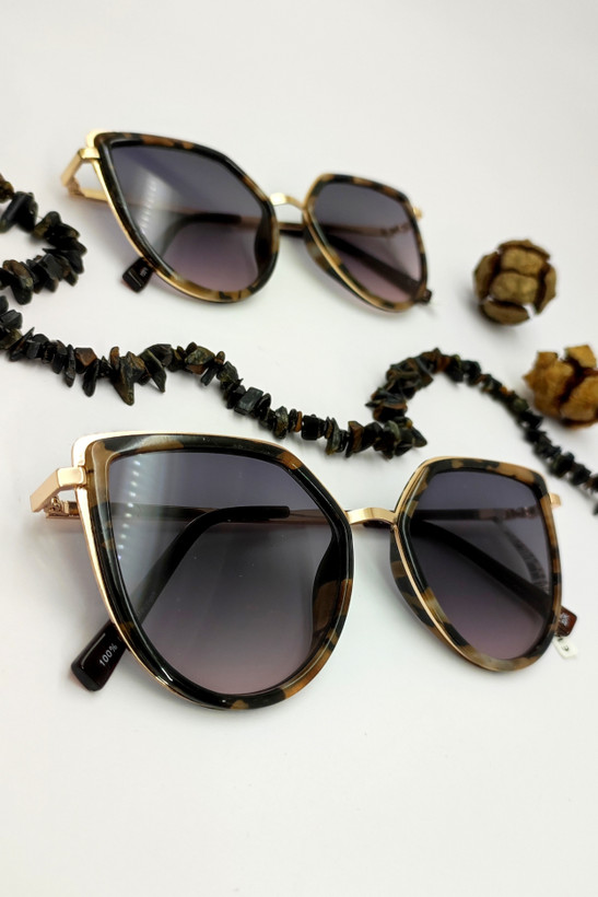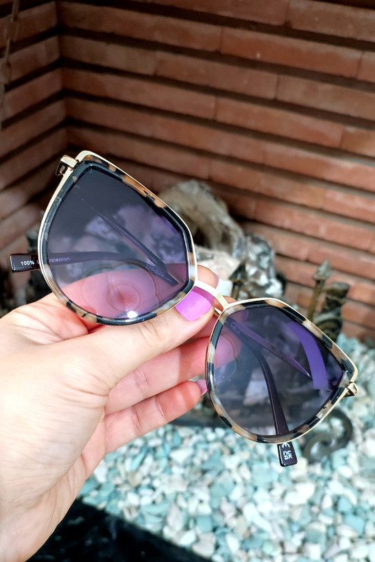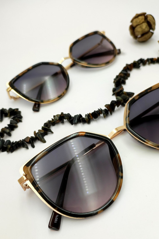 عینک آفتابی با طراحی خاص. فریم و دسته فلز همراه تزیین کائوچو