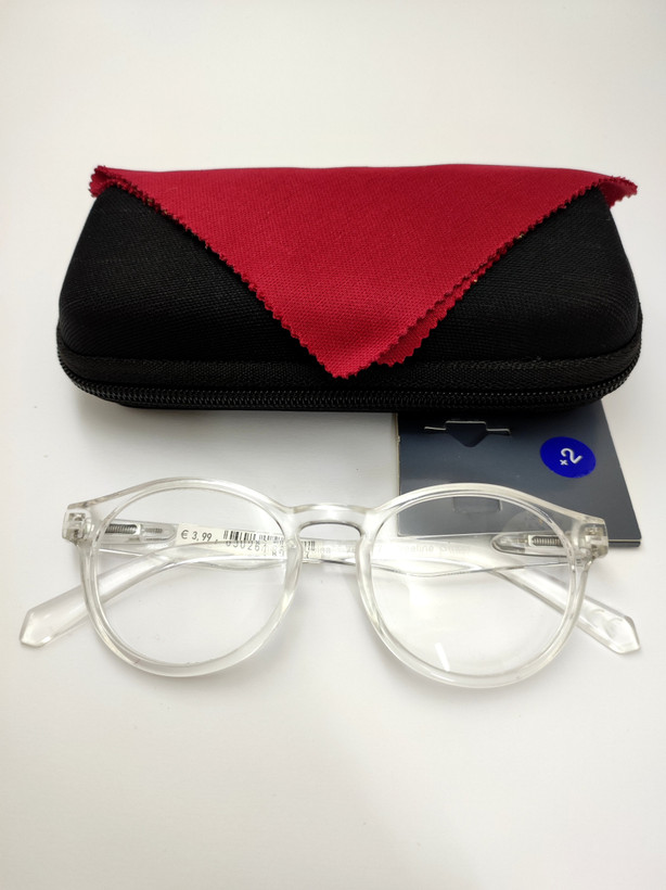 عینک طبی دسته فنر شیشه گرد شفاف +۲