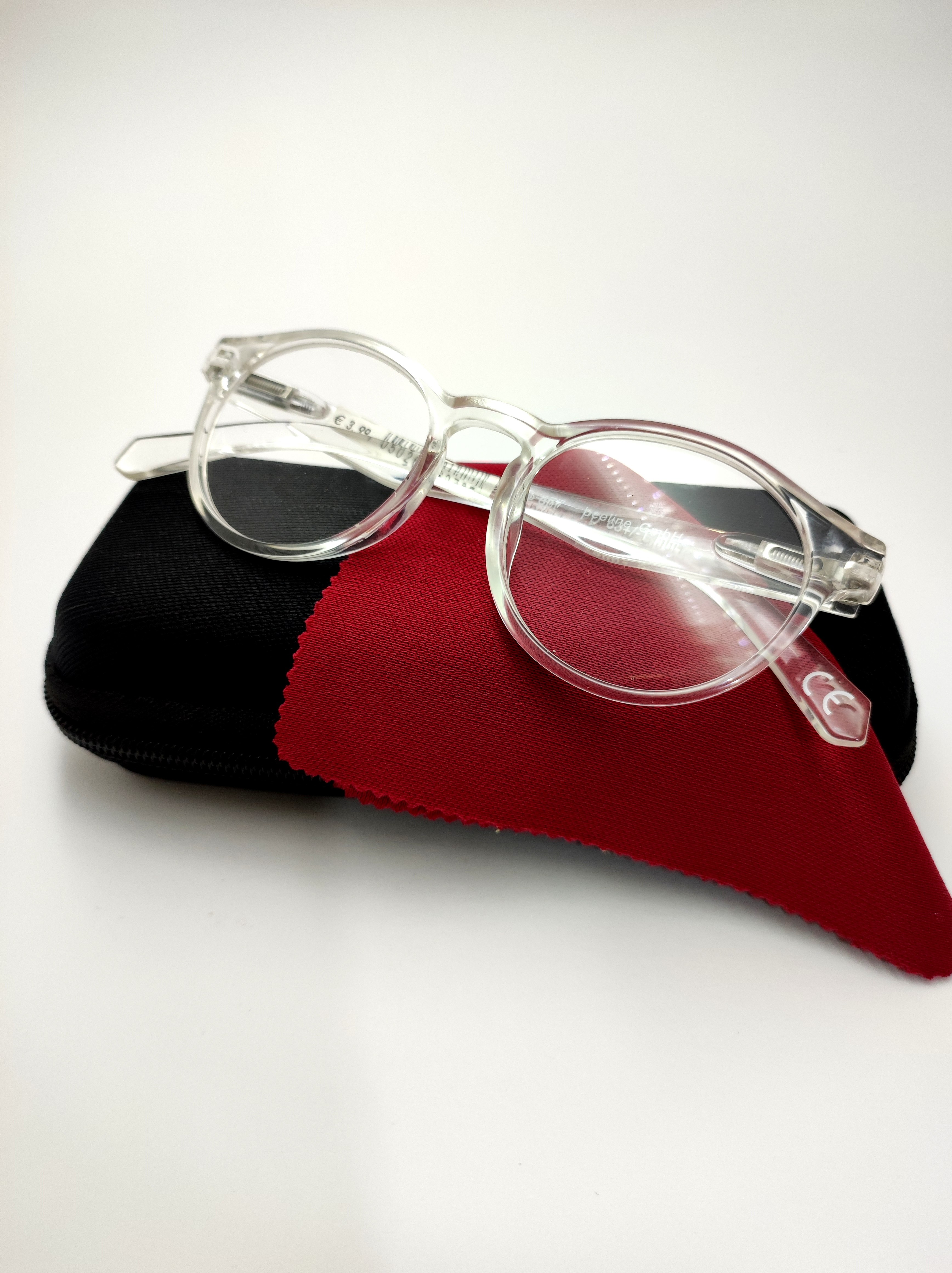 عینک طبی دسته فنر شیشه گرد شفاف +۲