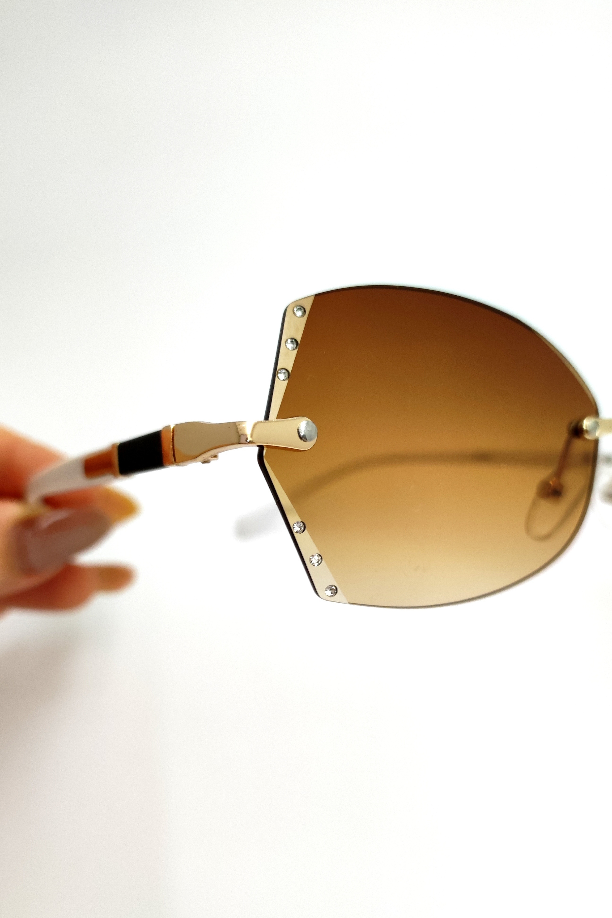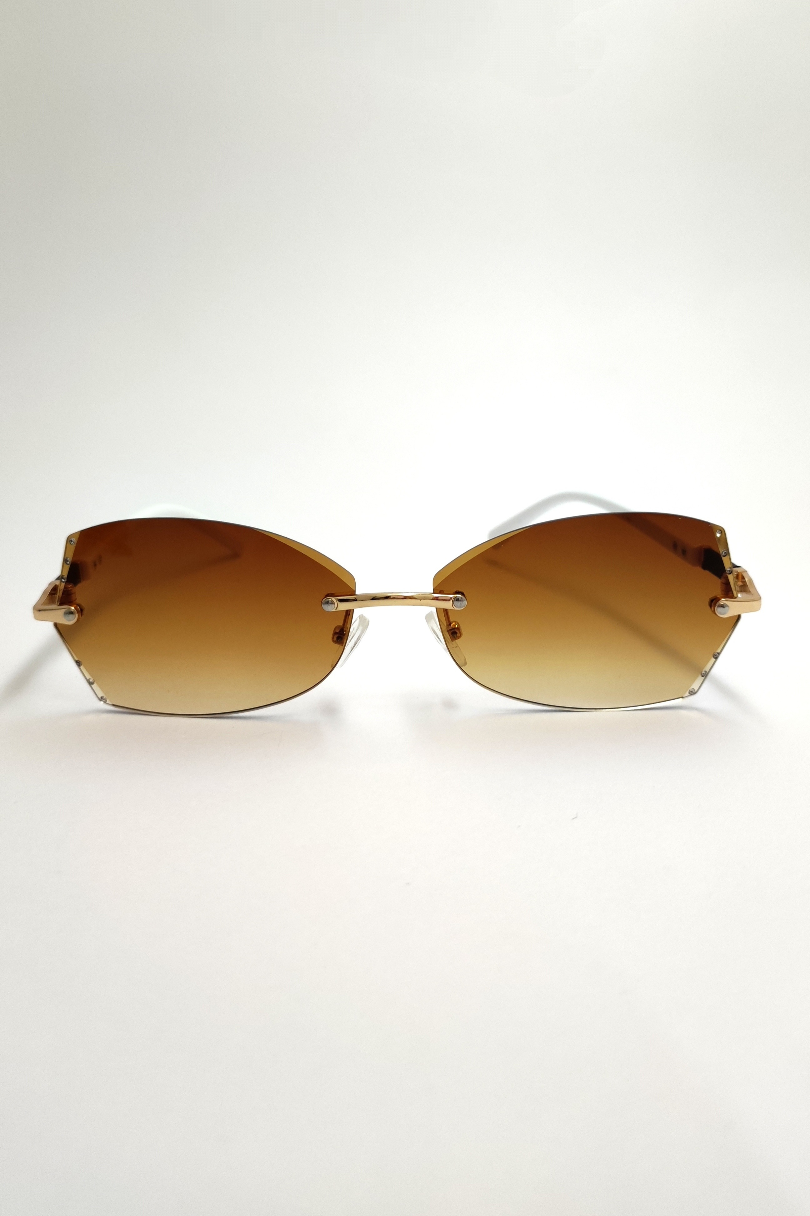 عینک آفتابی زنانه بدون فریم باریک نگیندار عدسی هایلایت قهوهای