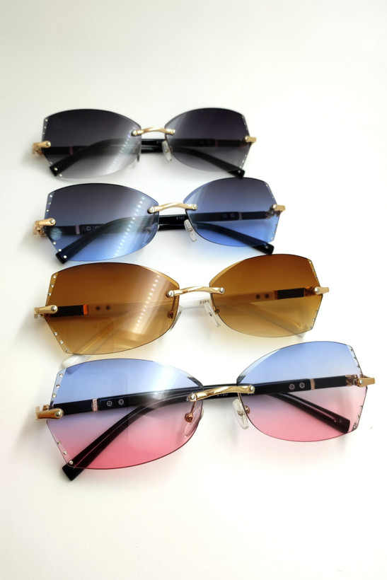 عینک آفتابی زنانه بدون فریم باریک نگیندار عدسی سورمهای