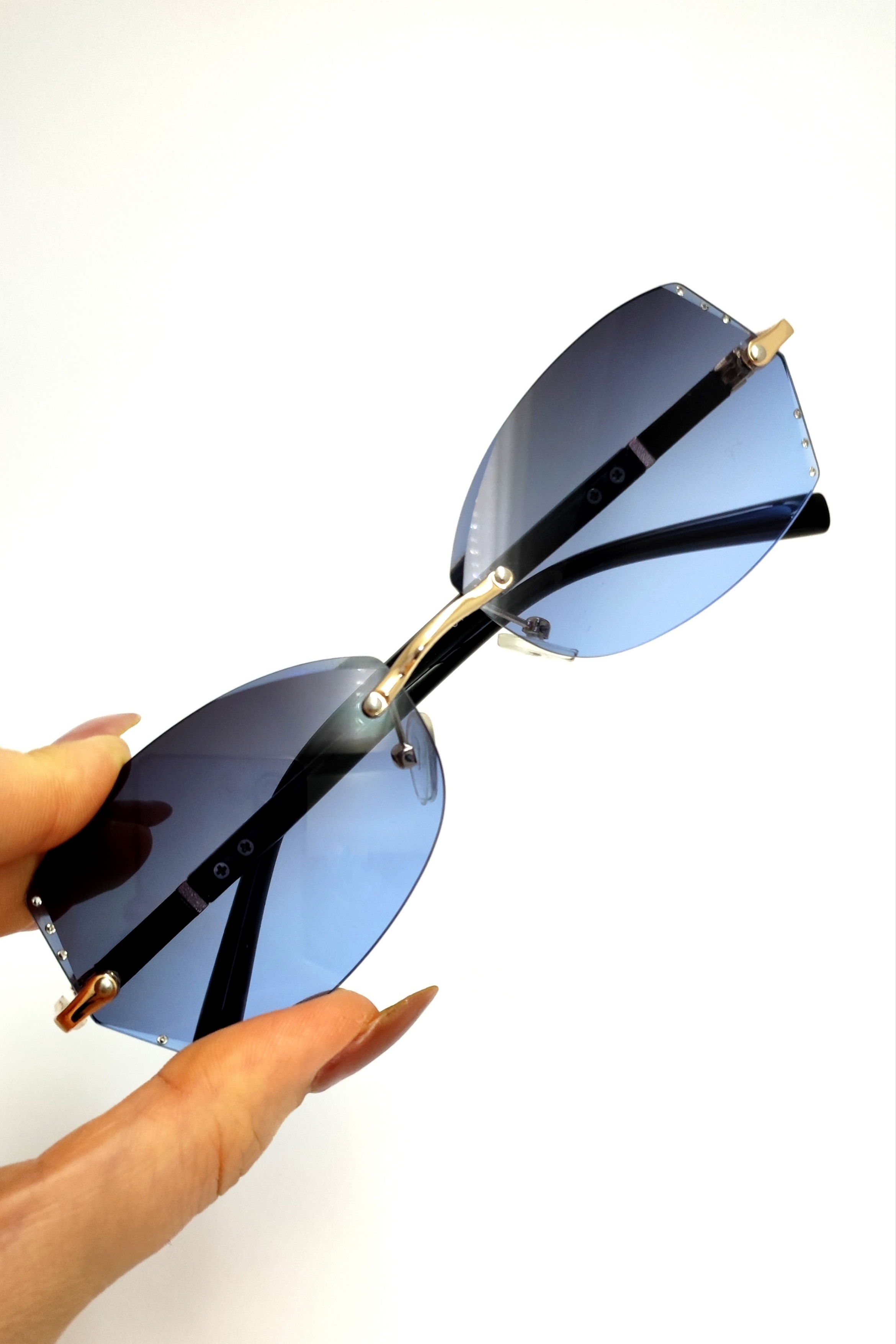 عینک آفتابی زنانه بدون فریم باریک نگیندار عدسی سورمهای