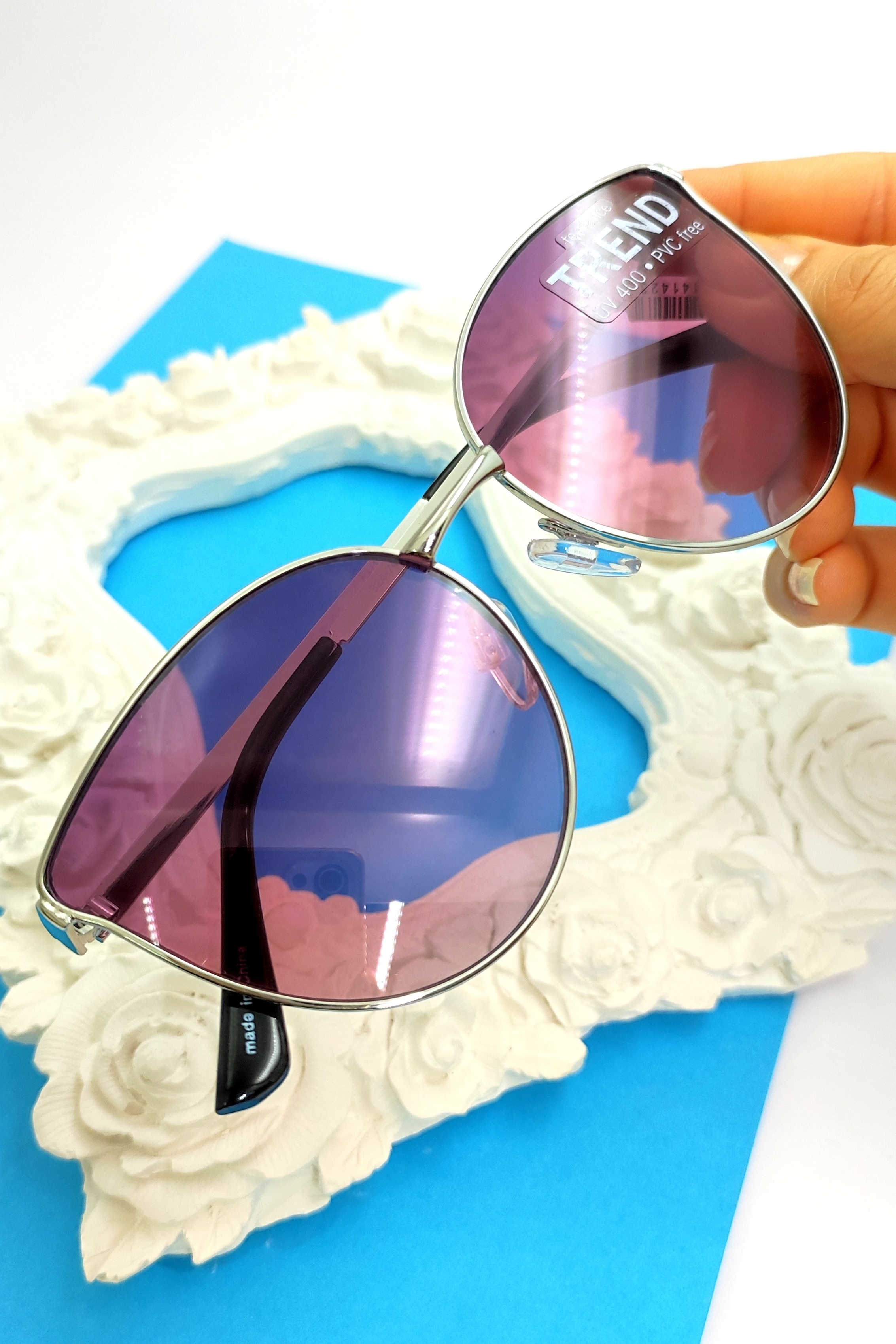 عینک آفتابی اورجینال زنانه گربهای فلزی عدسی صورتی
