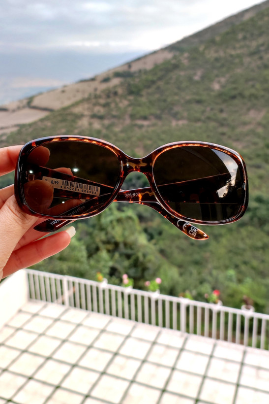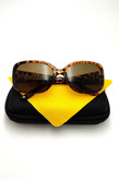 عینک آفتابی زنانه مستطیل باریک رنگ پلنگی قهوهای عدسی بیضی دسته پهن اورجینال اقتصادی