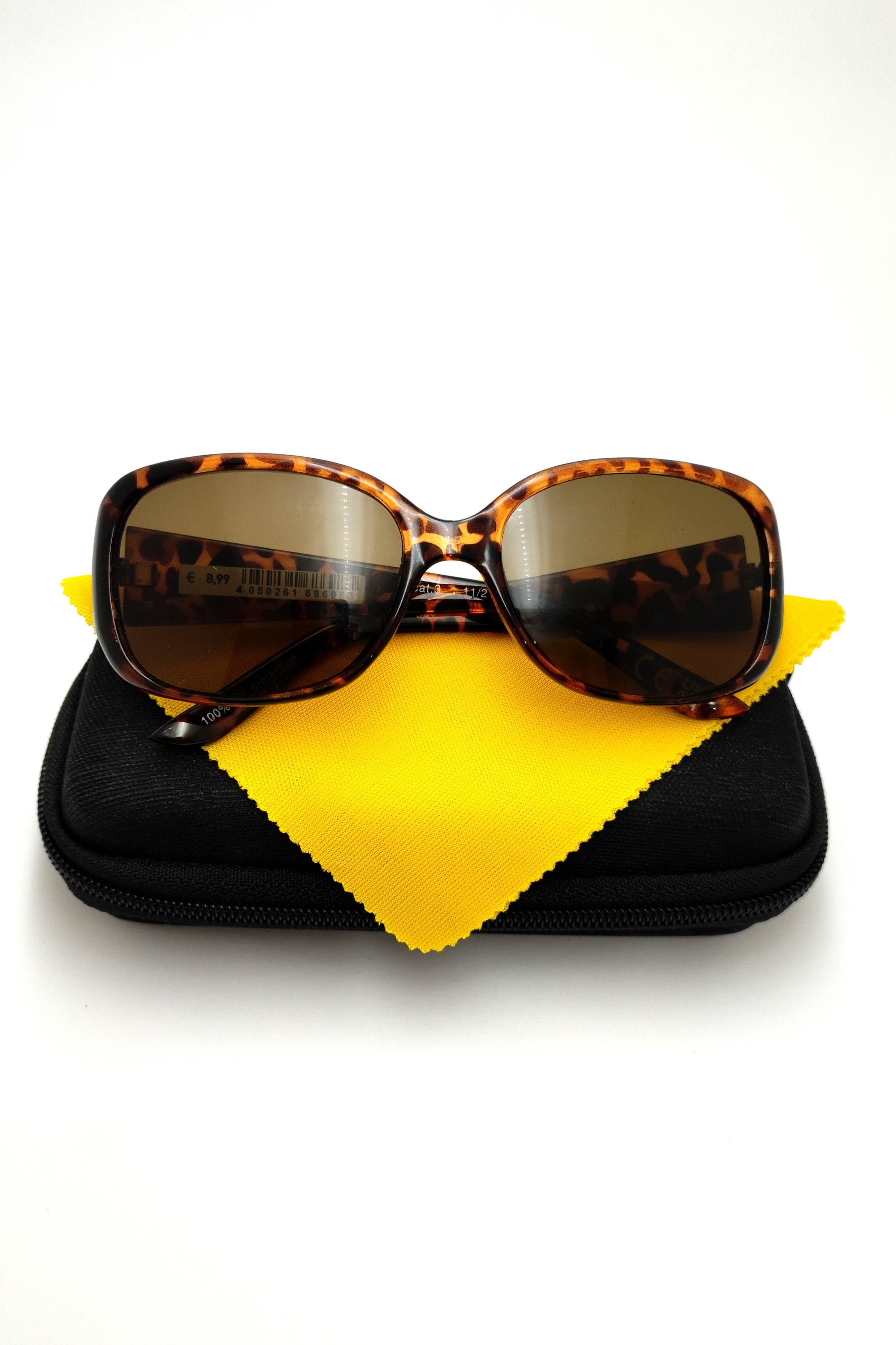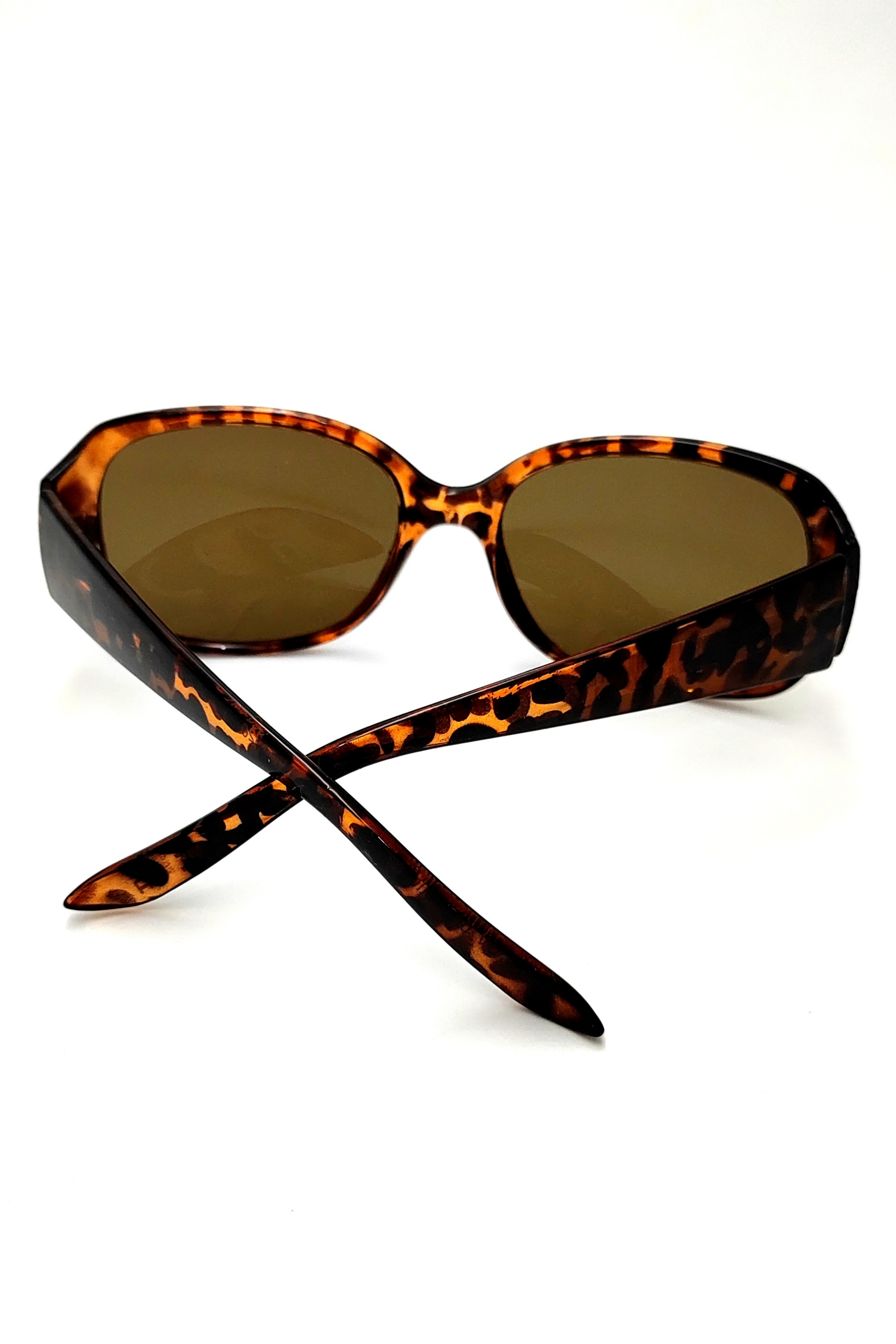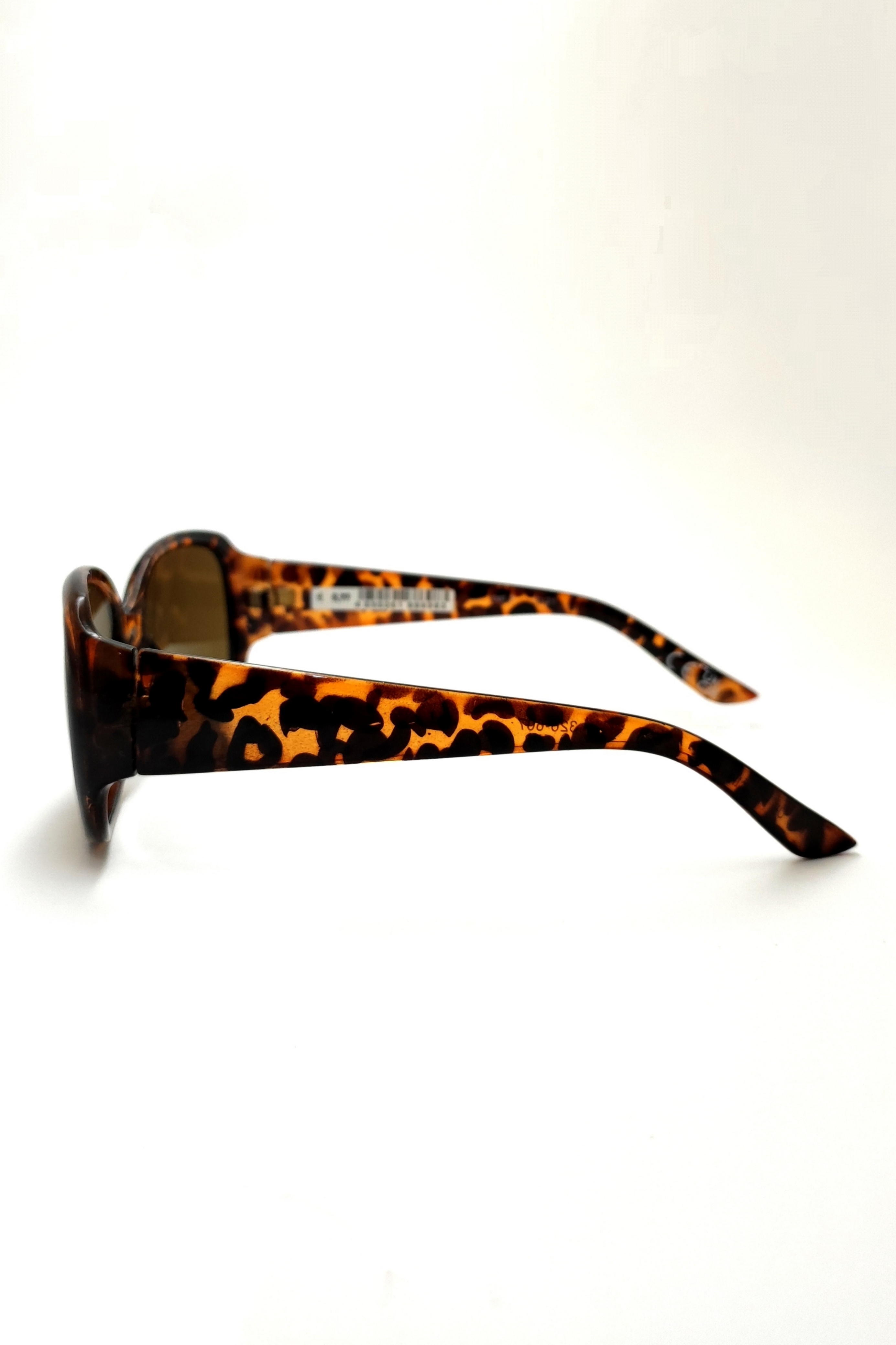 عینک آفتابی زنانه مستطیل باریک رنگ پلنگی قهوهای عدسی بیضی دسته پهن اورجینال اقتصادی