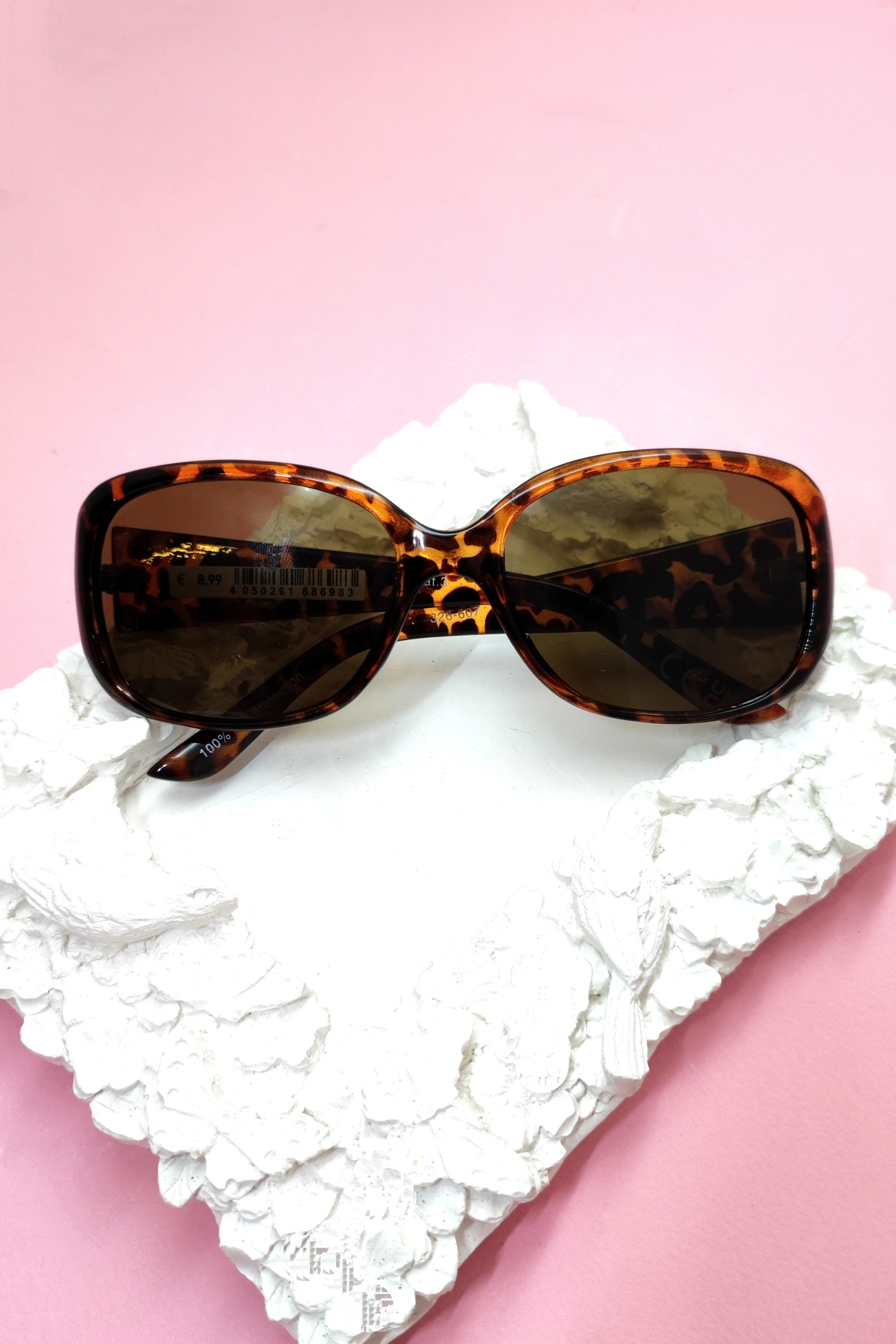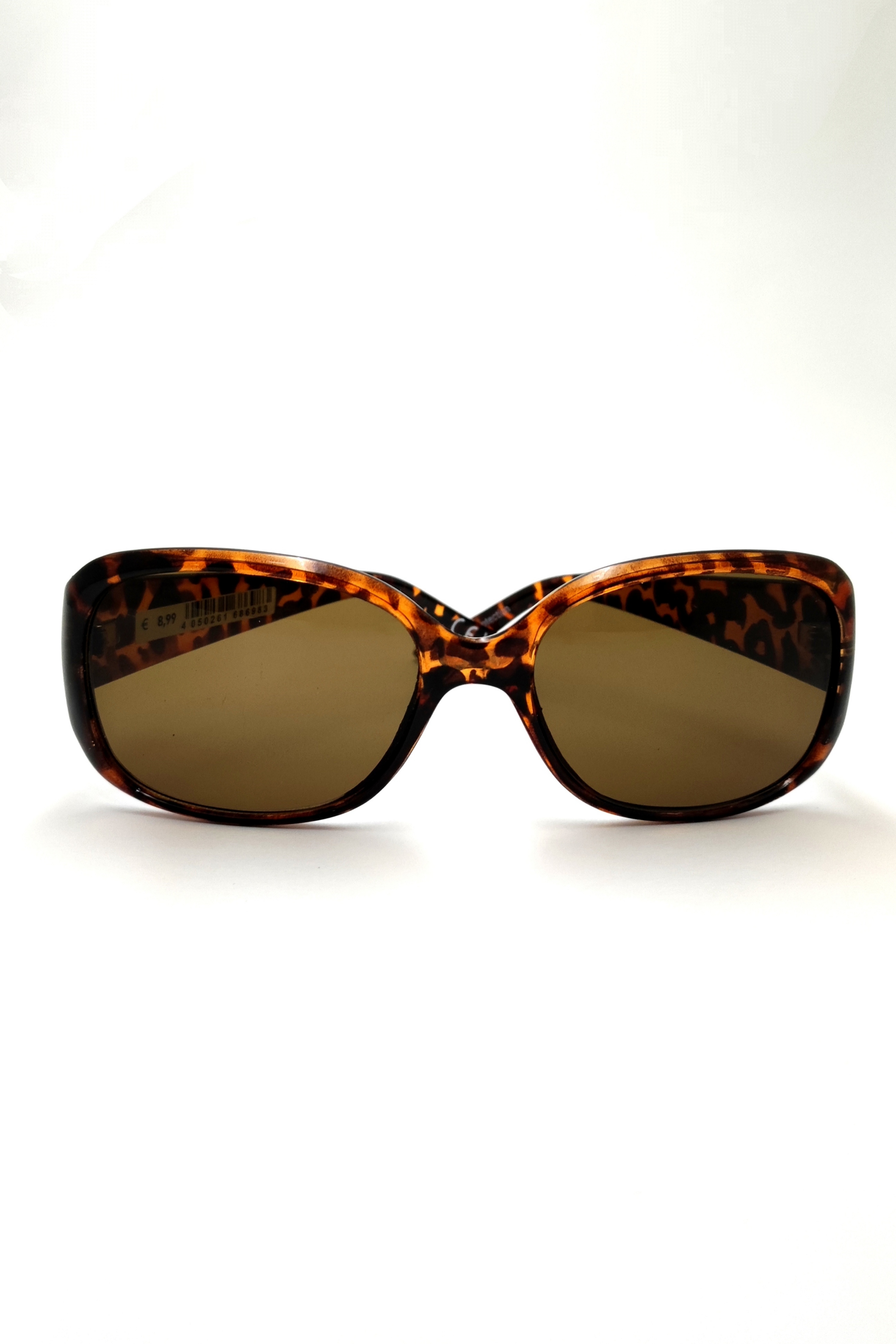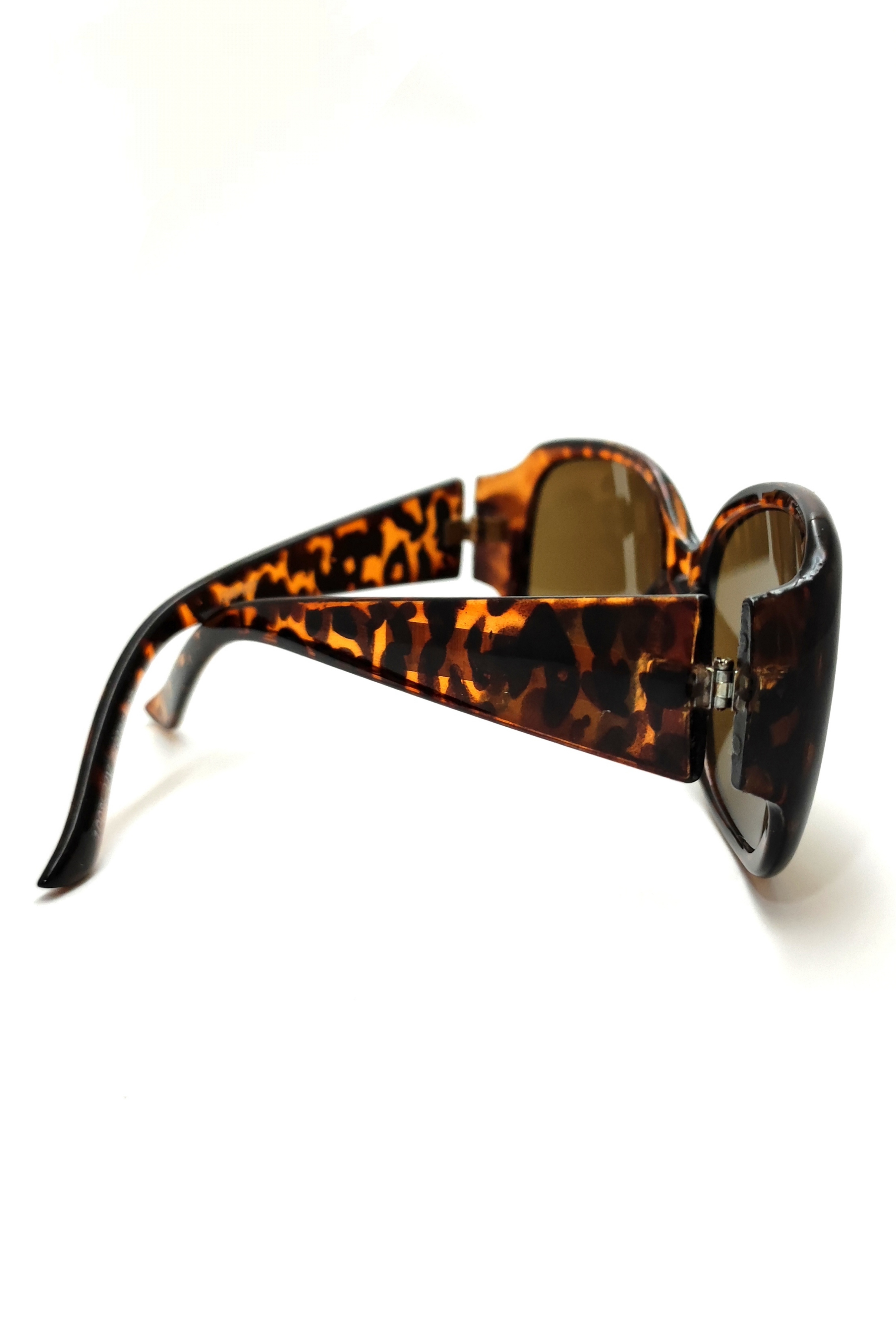 عینک آفتابی زنانه مستطیل باریک رنگ پلنگی قهوهای عدسی بیضی دسته پهن اورجینال اقتصادی