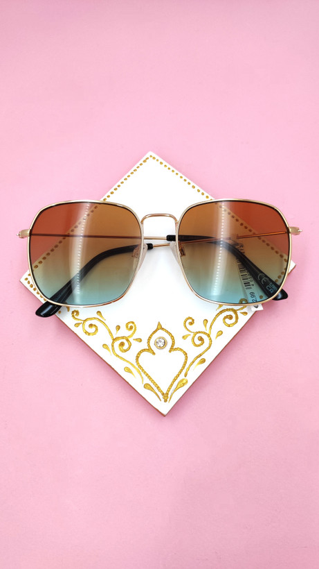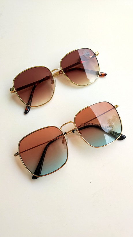 عینک آفتابی اورجینال فلزی رنگ ثابت مربعی عدسی هایلایت دورنگ قهوهای آبی مردانه و زنانه