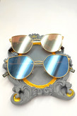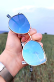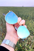 عینک آفتابی و برف اورجینال فلزی گوشهدار عدسی آینهای آبی و بژ