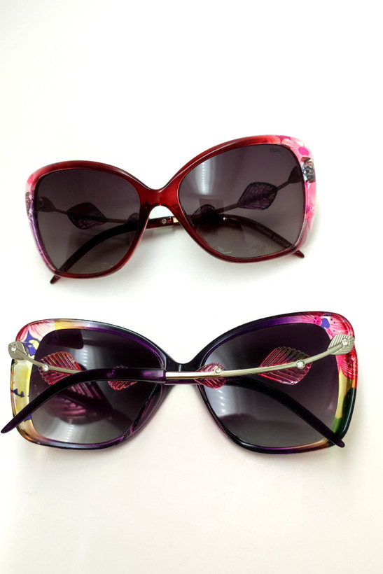 عینک آفتابی اورجینال زنانه گربهای پلاریزه مدل گلدار دسته فانتزی نگیندار برند دکتر هاروارد