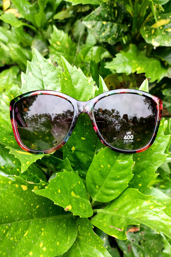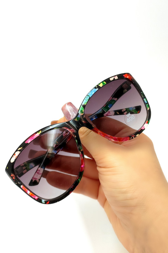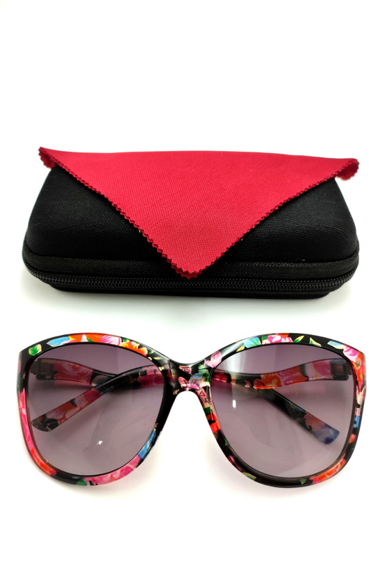 عینک آفتابی اورجینال زنانه گربهای طرح گلدار دسته موجدار