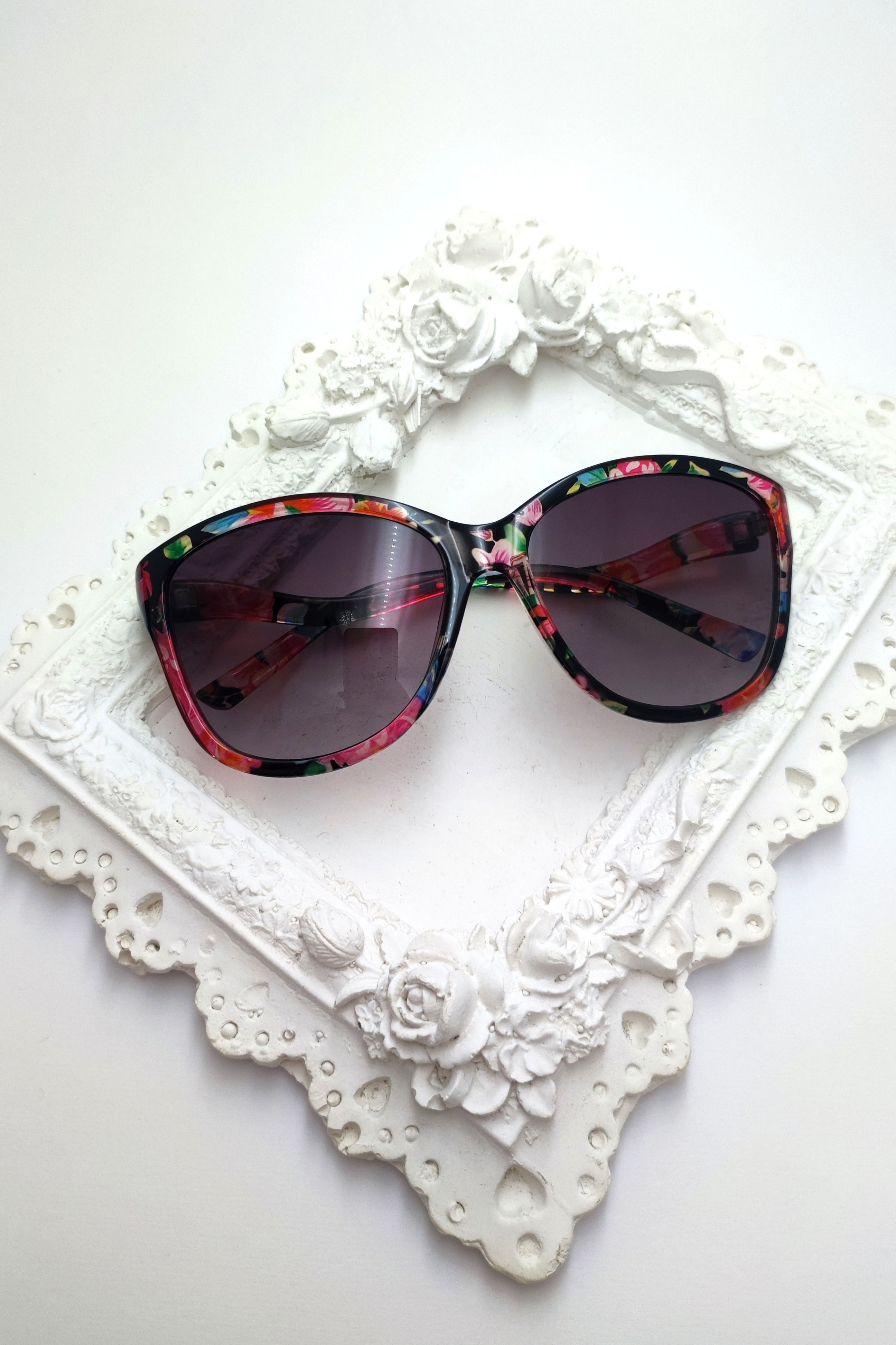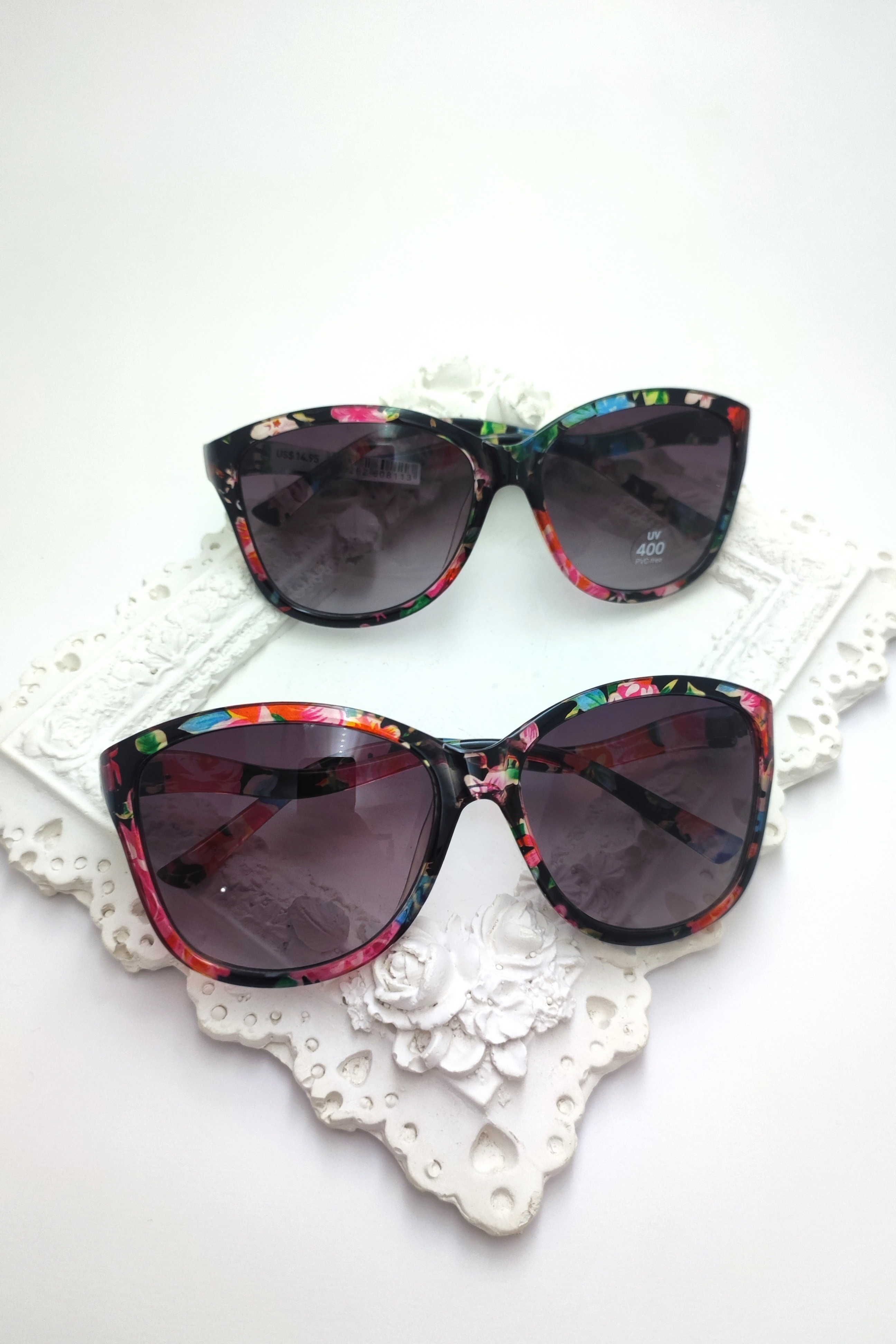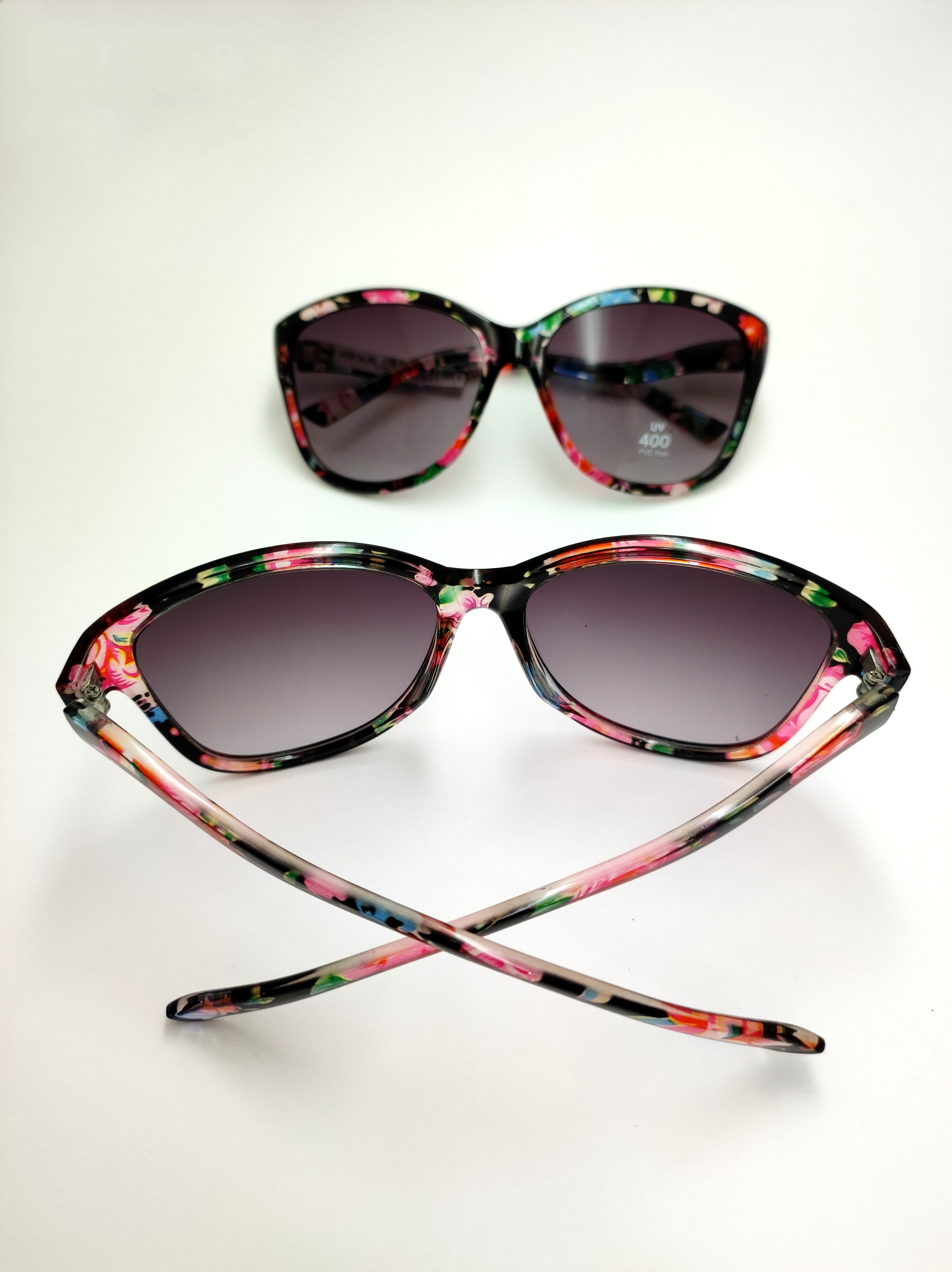 عینک آفتابی اورجینال زنانه گربهای طرح گلدار دسته موجدار