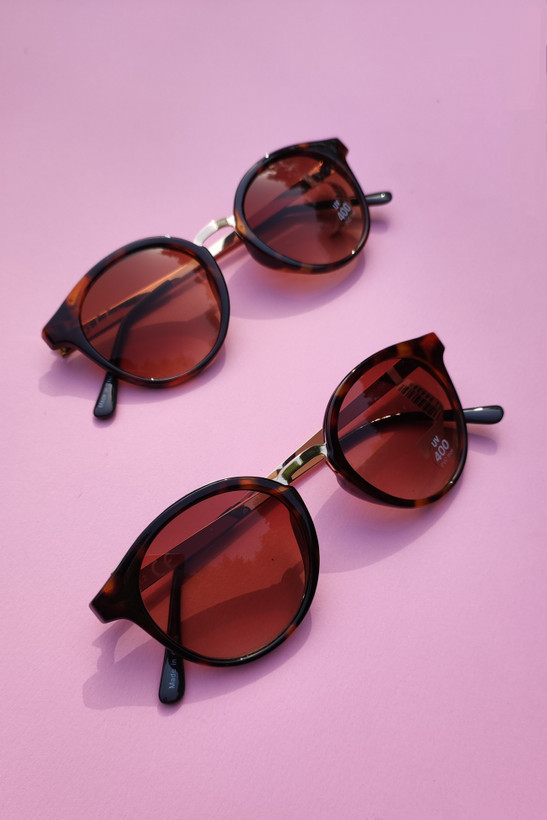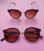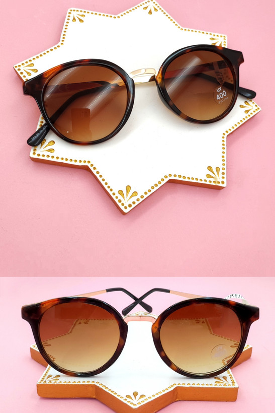 عینک آفتابی اورجینال زنانه شیشه گرد دسته فلزی هولدردار رنگ هاوانا