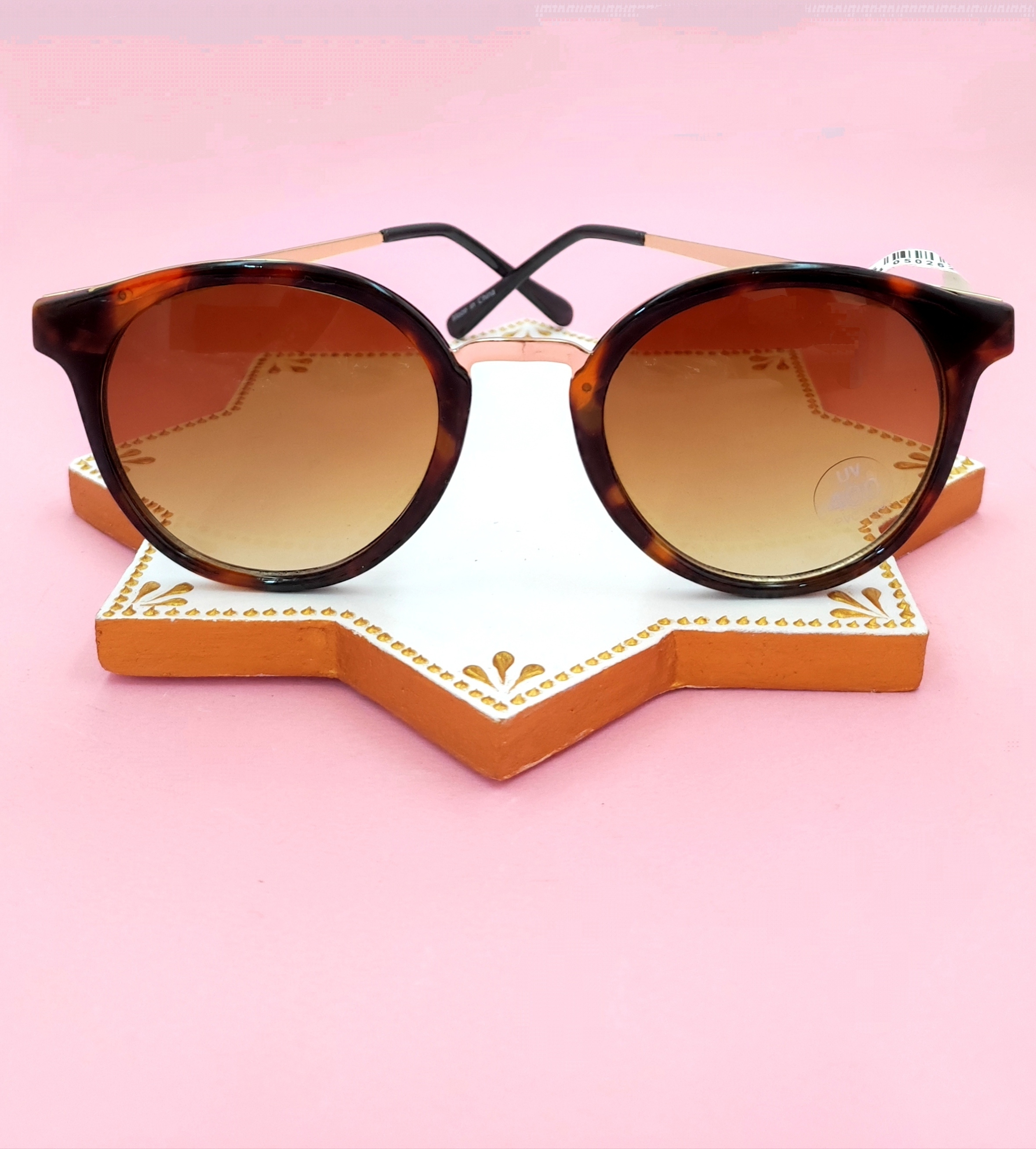 عینک آفتابی اورجینال زنانه شیشه گرد دسته فلزی هولدردار رنگ هاوانا