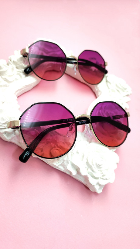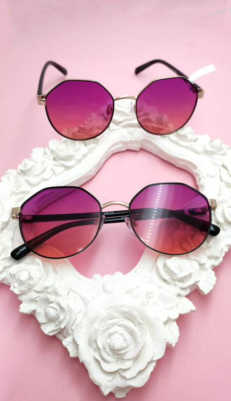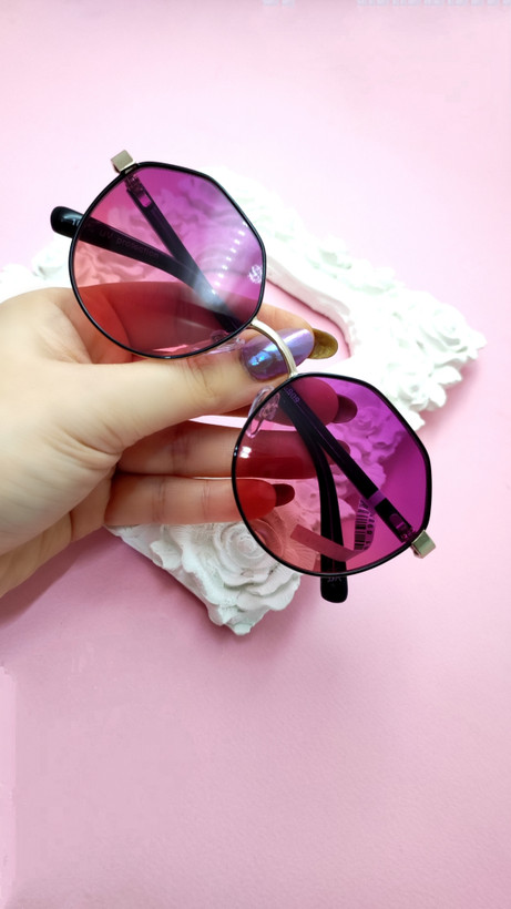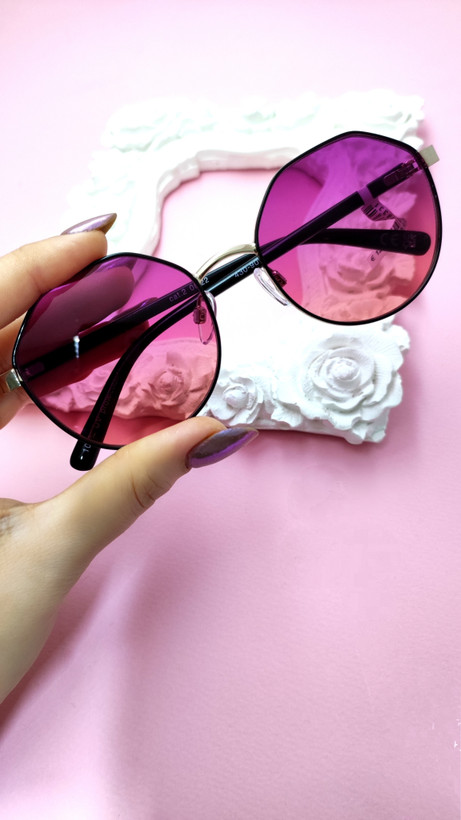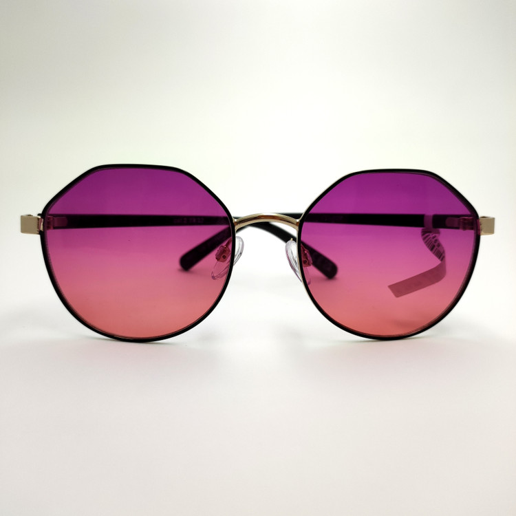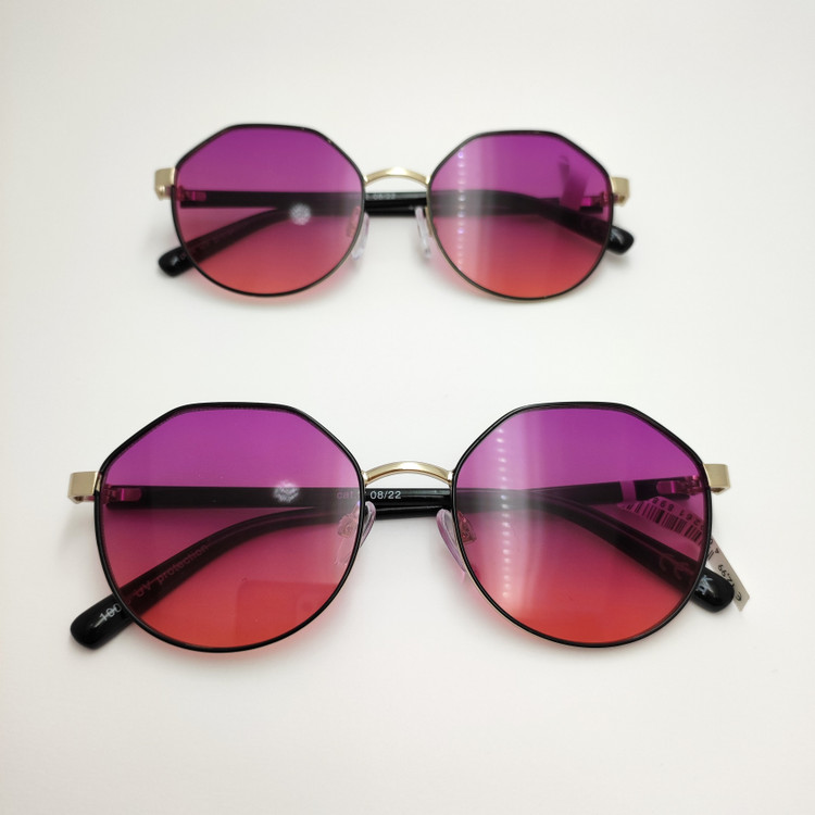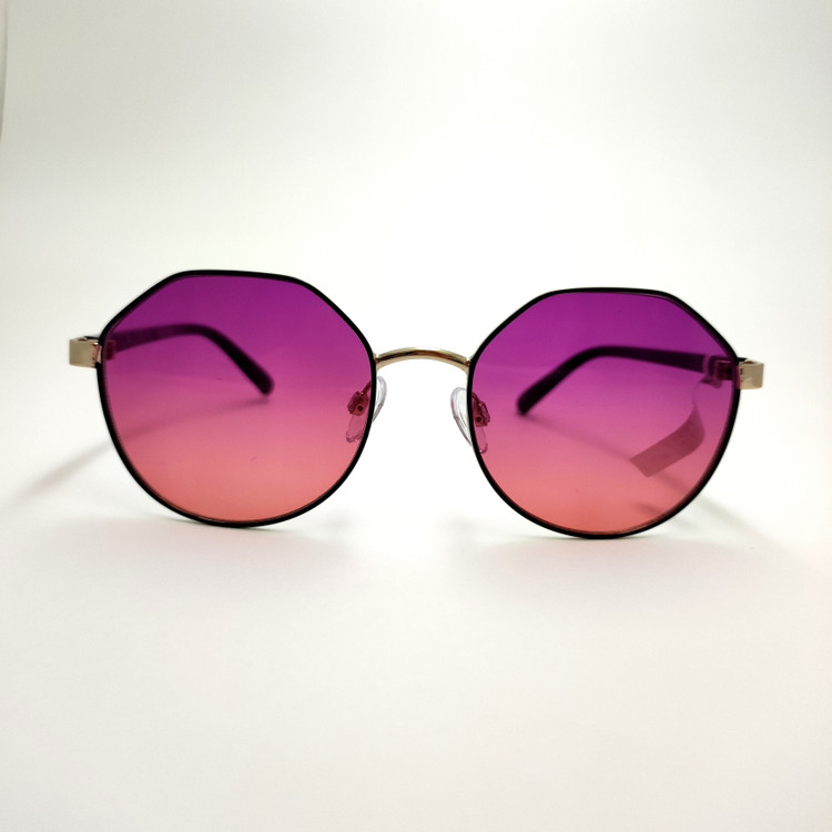 عینک آفتابی اورجینال فریم گرد چندضلعی فلزی عدسی بنفش هایلایت