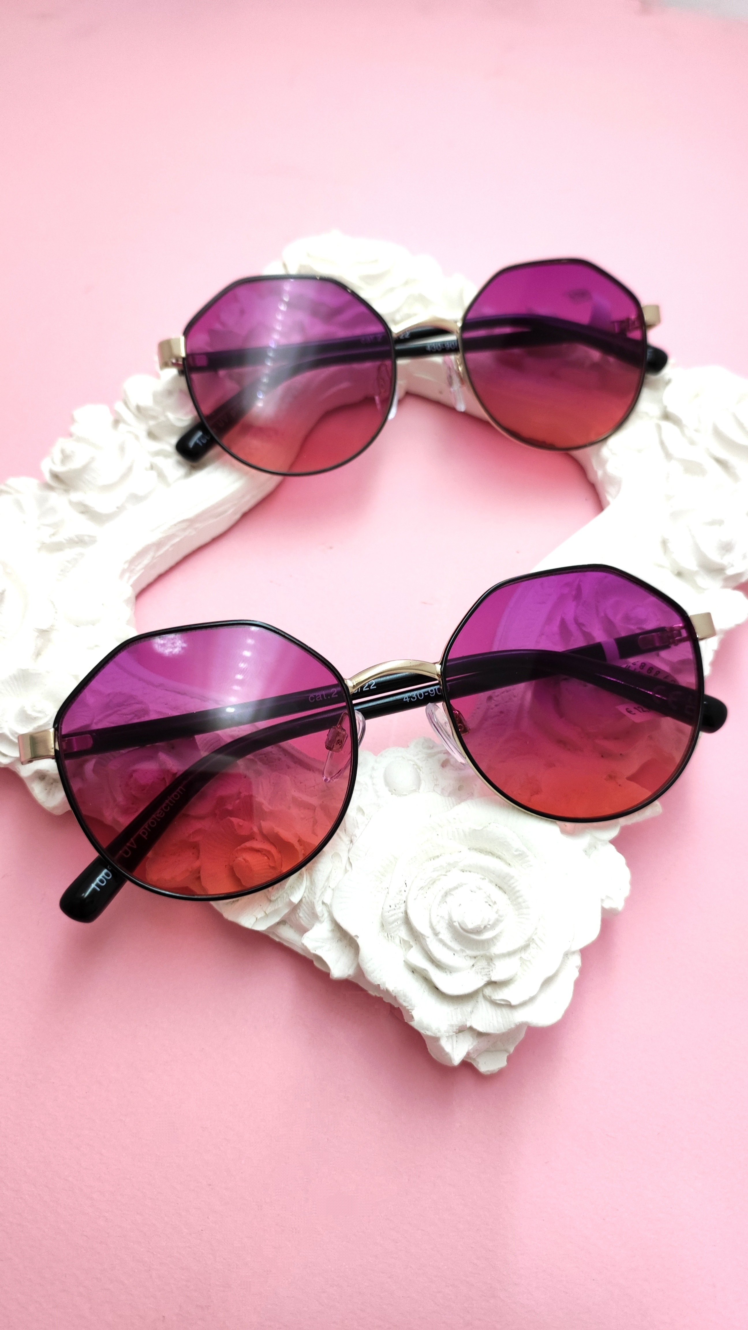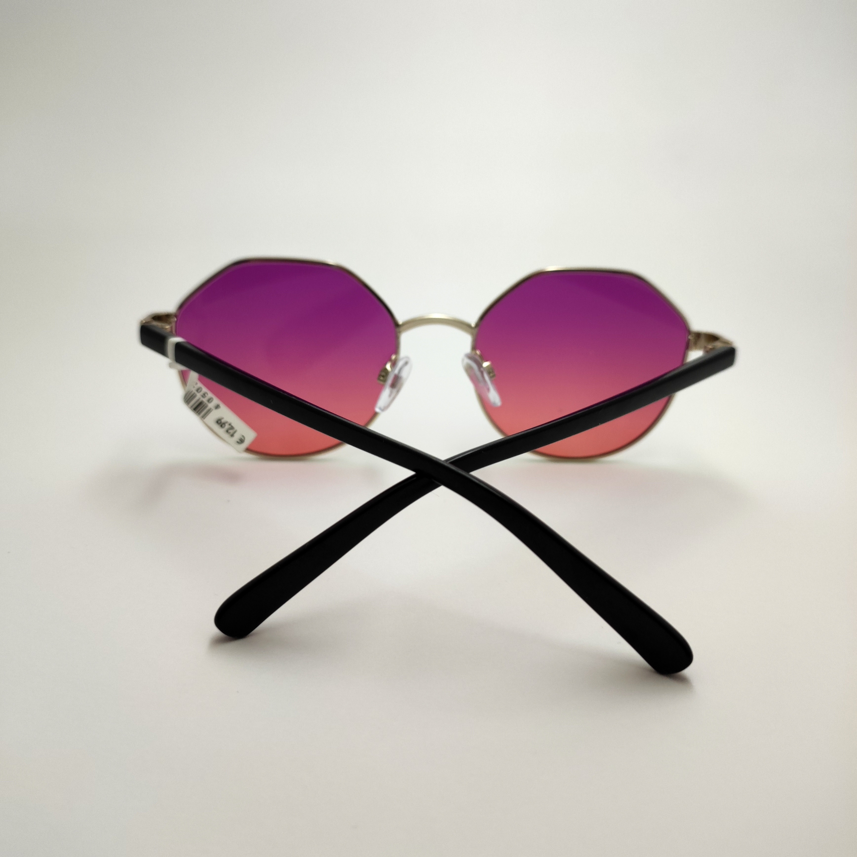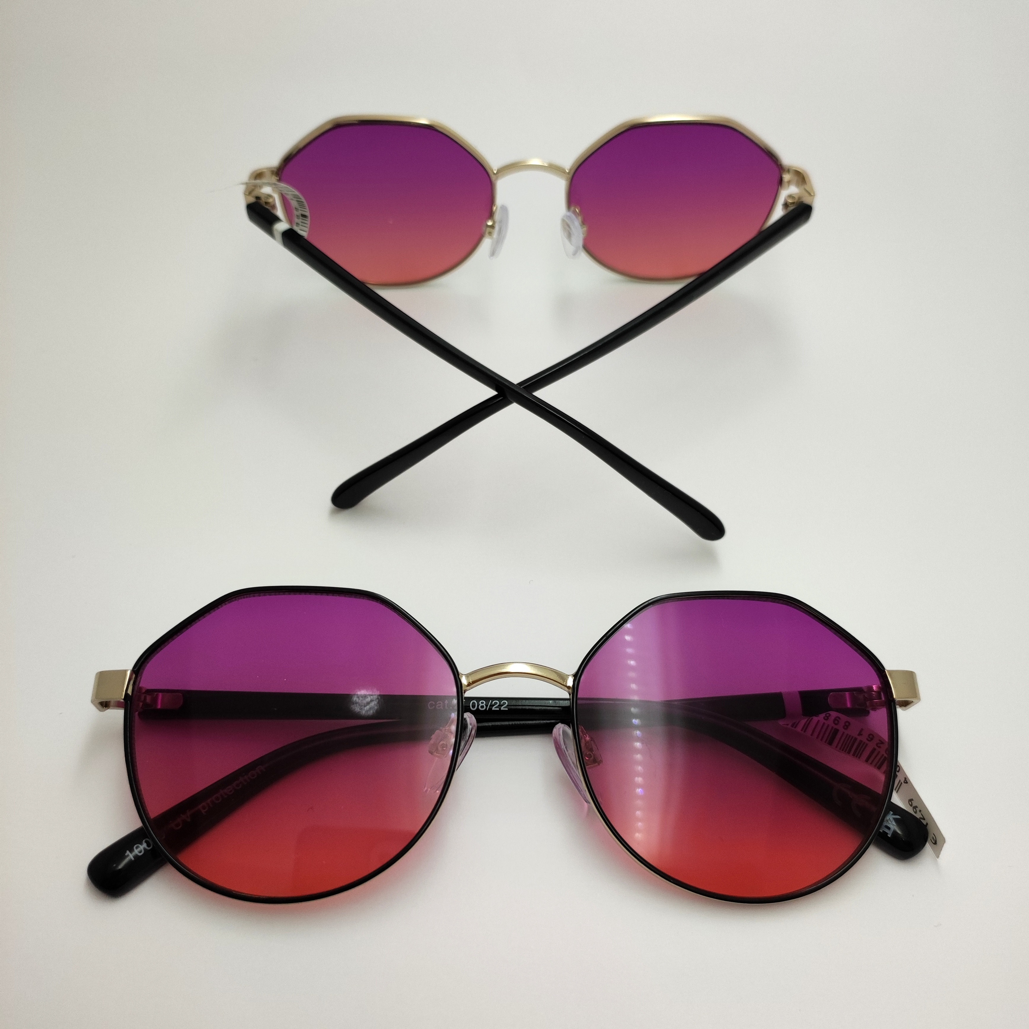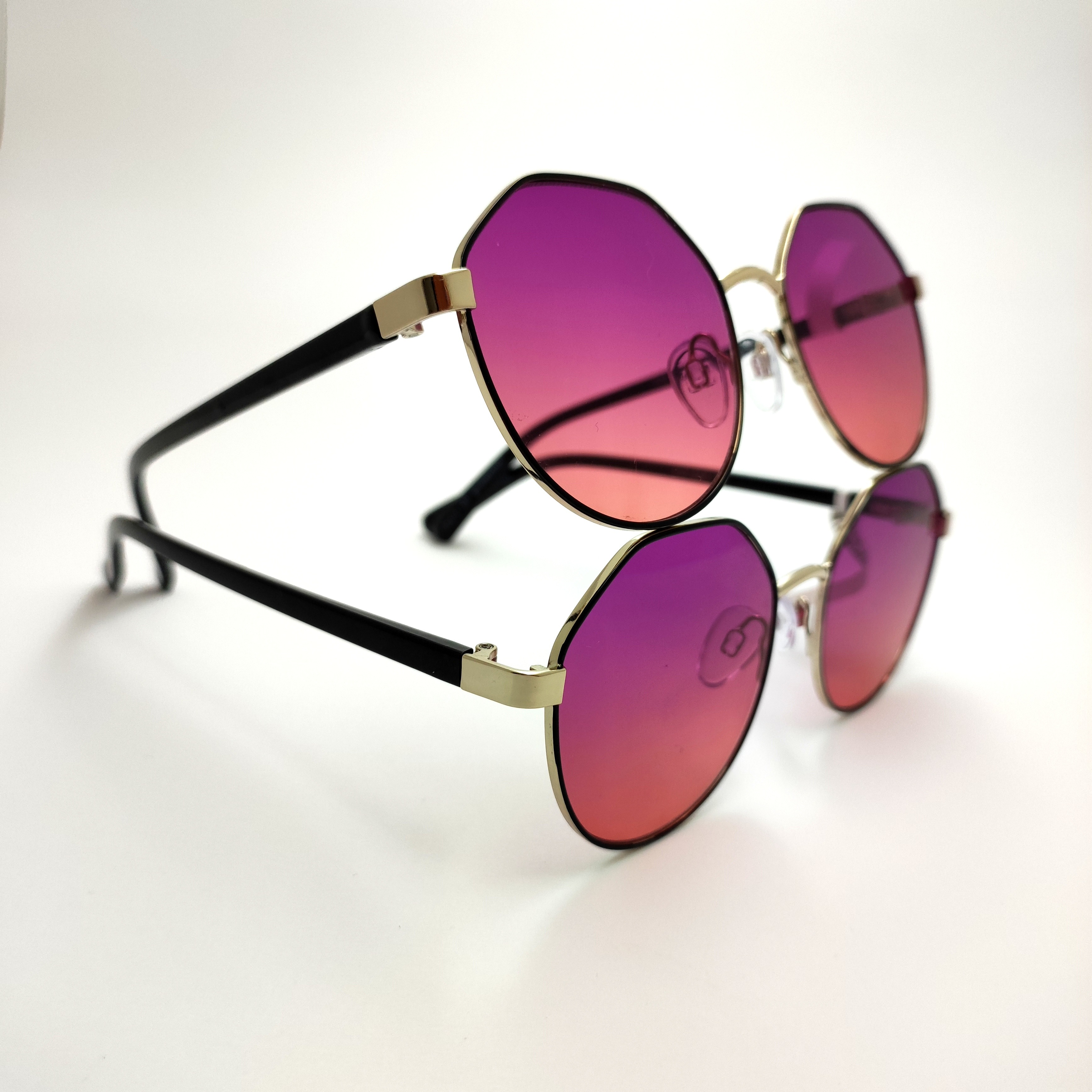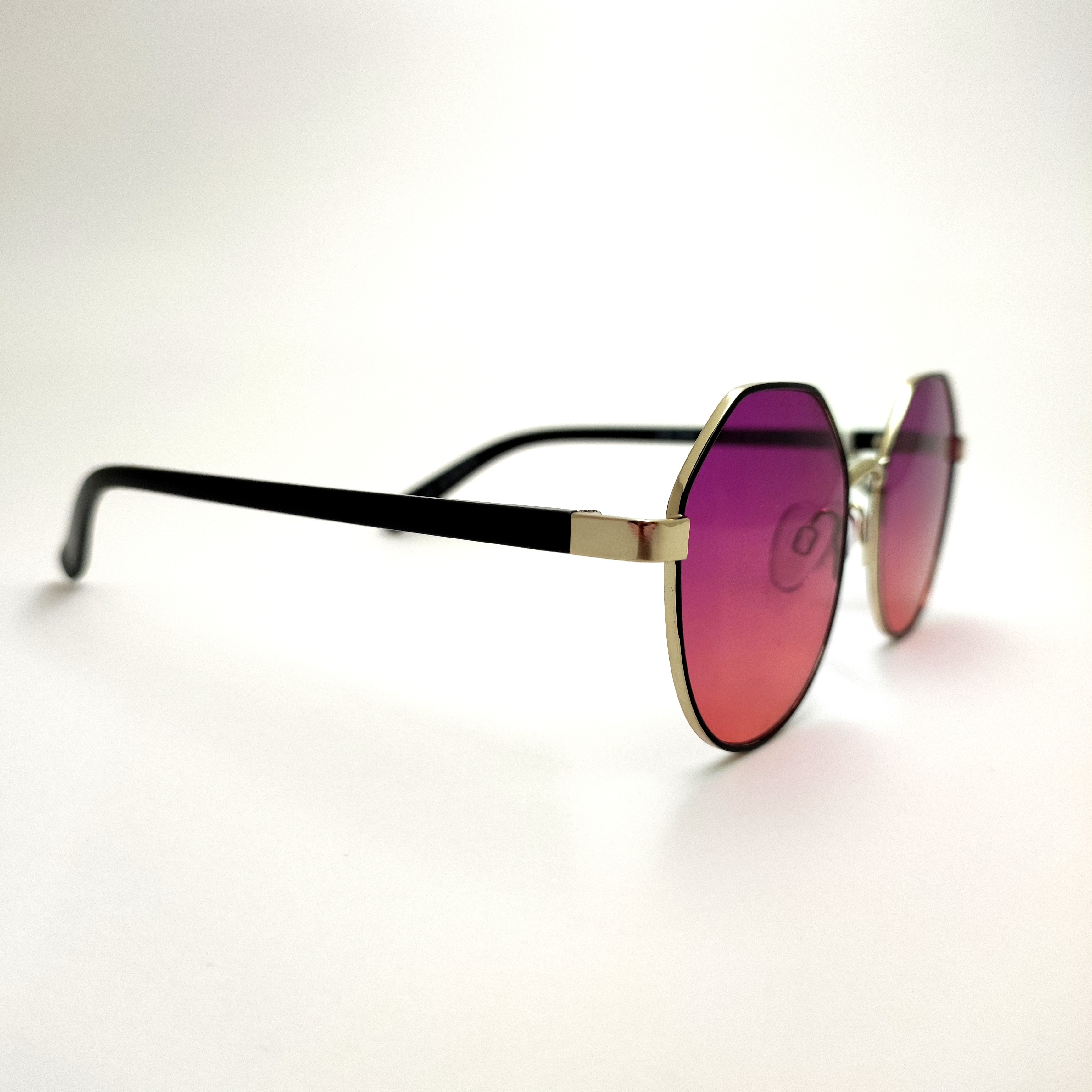 عینک آفتابی اورجینال فریم گرد چندضلعی فلزی عدسی بنفش هایلایت