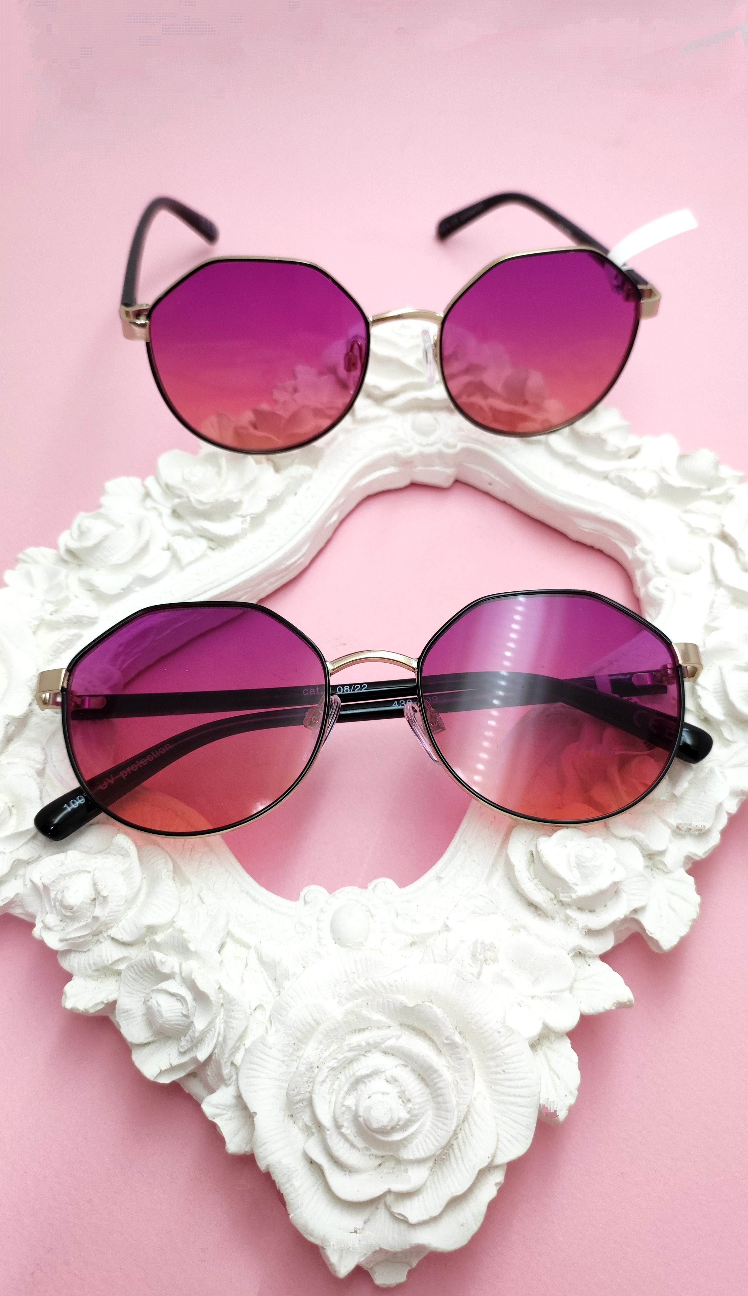 عدسی این عینک هایلایتی تیره و روشن از ترکیب رنگهای صورتی و یاسی هست. که با رنگ درجهی روشنی که داره باعث میشه در هوای نیمه ابری و ابری هم به خوبی قابل استفاده باشه.