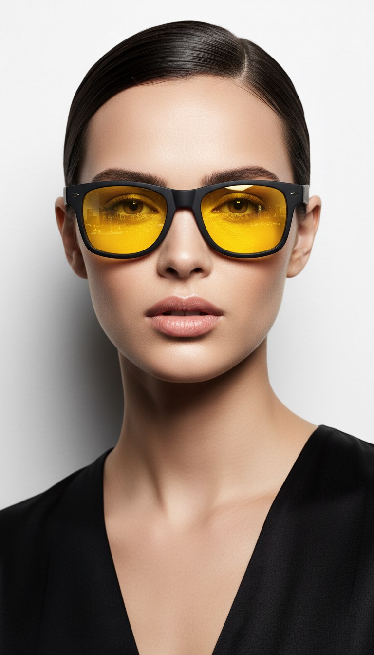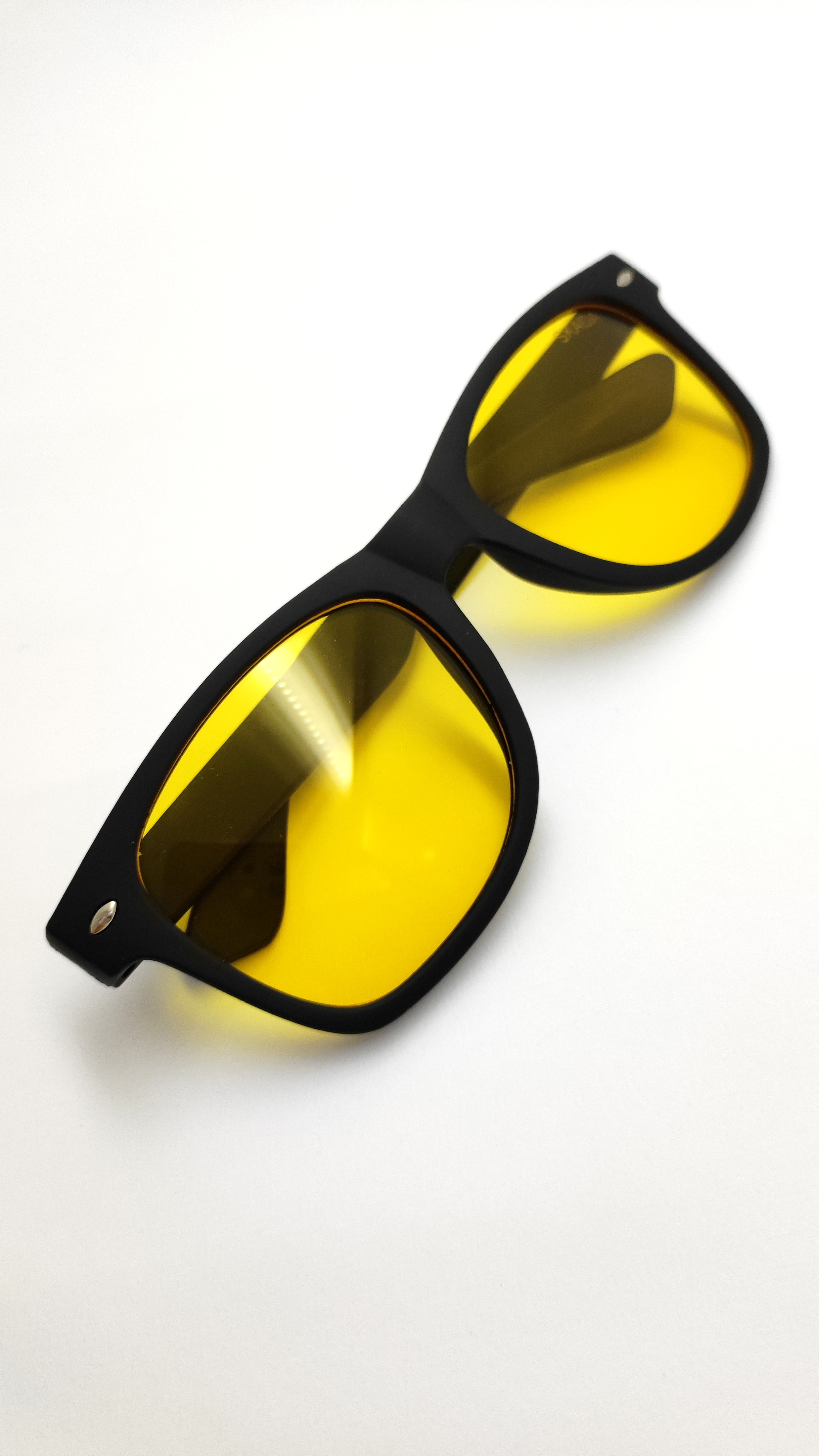 عینک شب و روز مدل ویفرر عدسی زرد. فریم مشکی مات