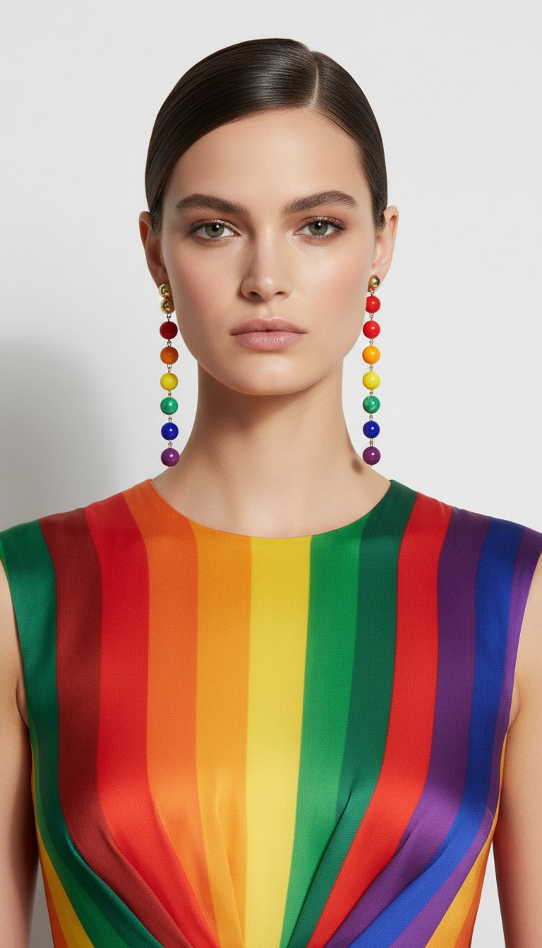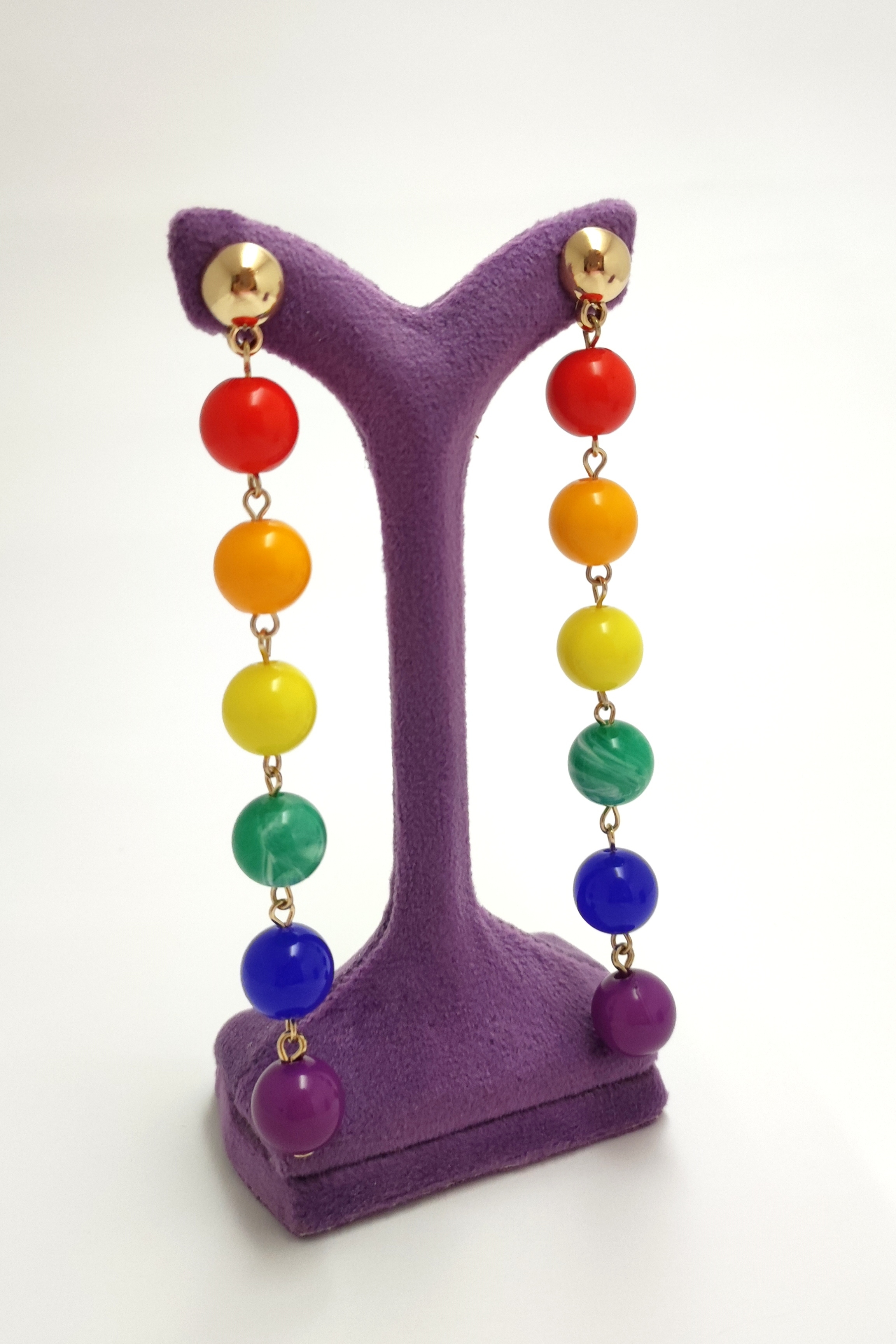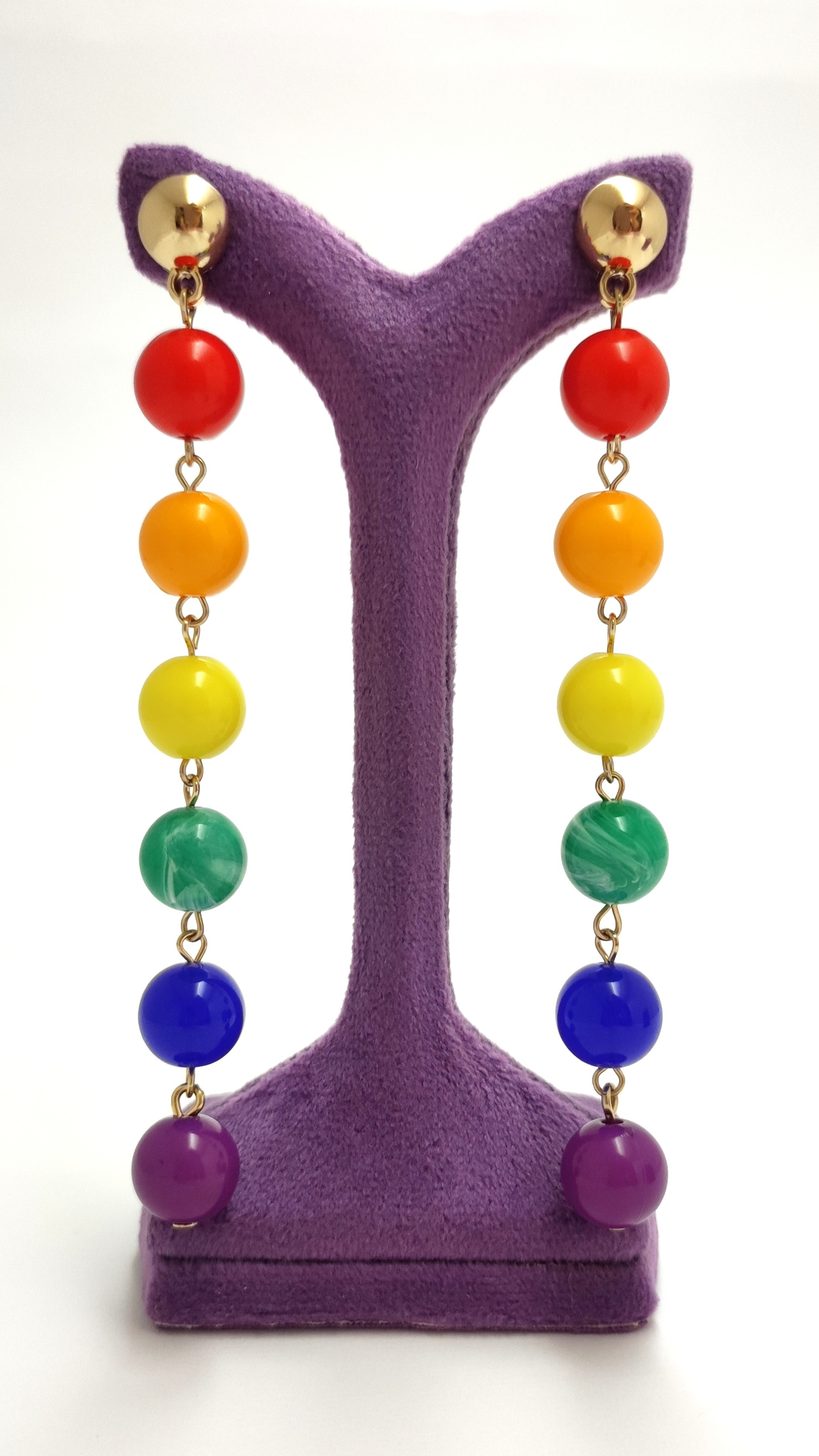 گوشواره بلند اورجینال مهره‌ای رنگارنگ