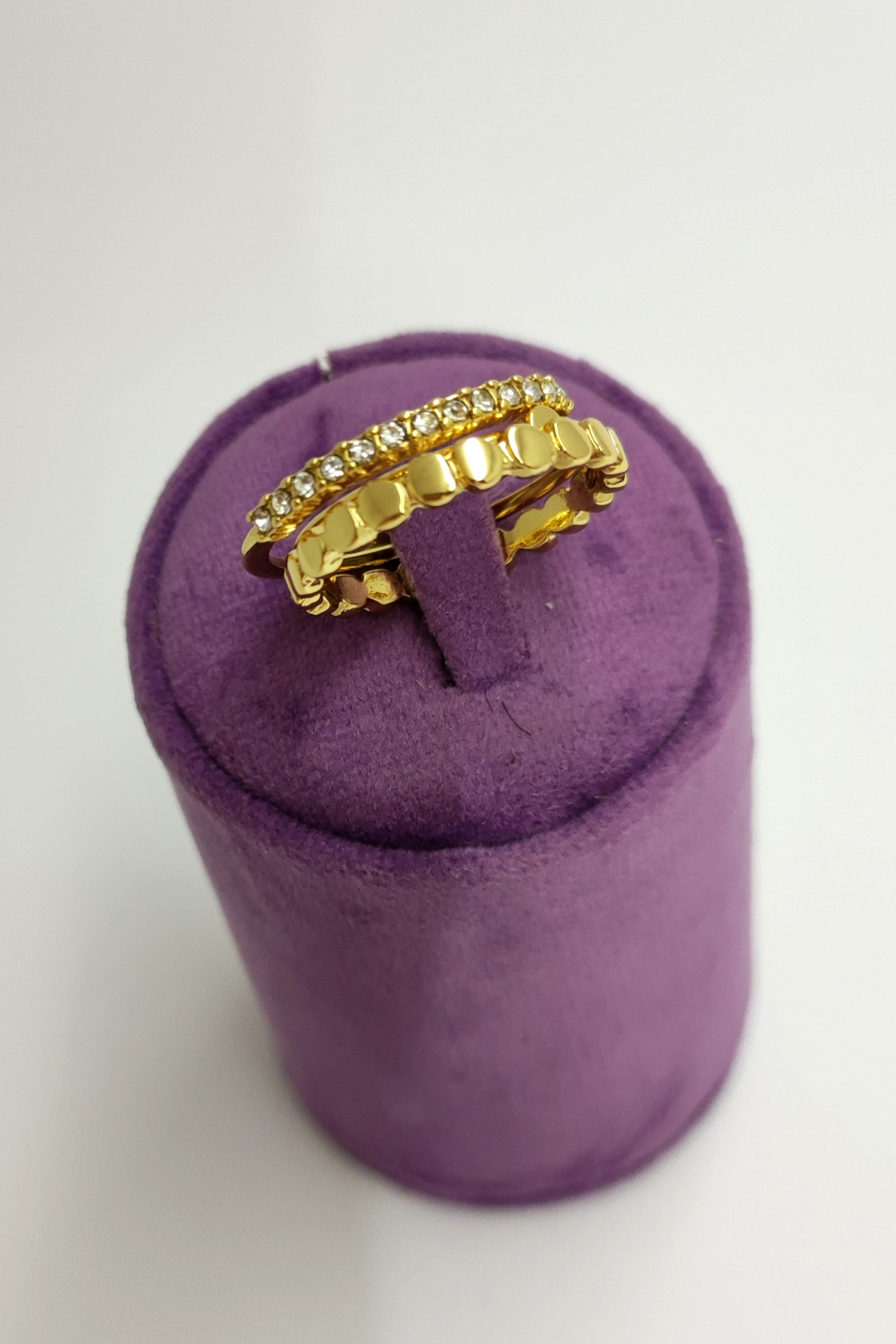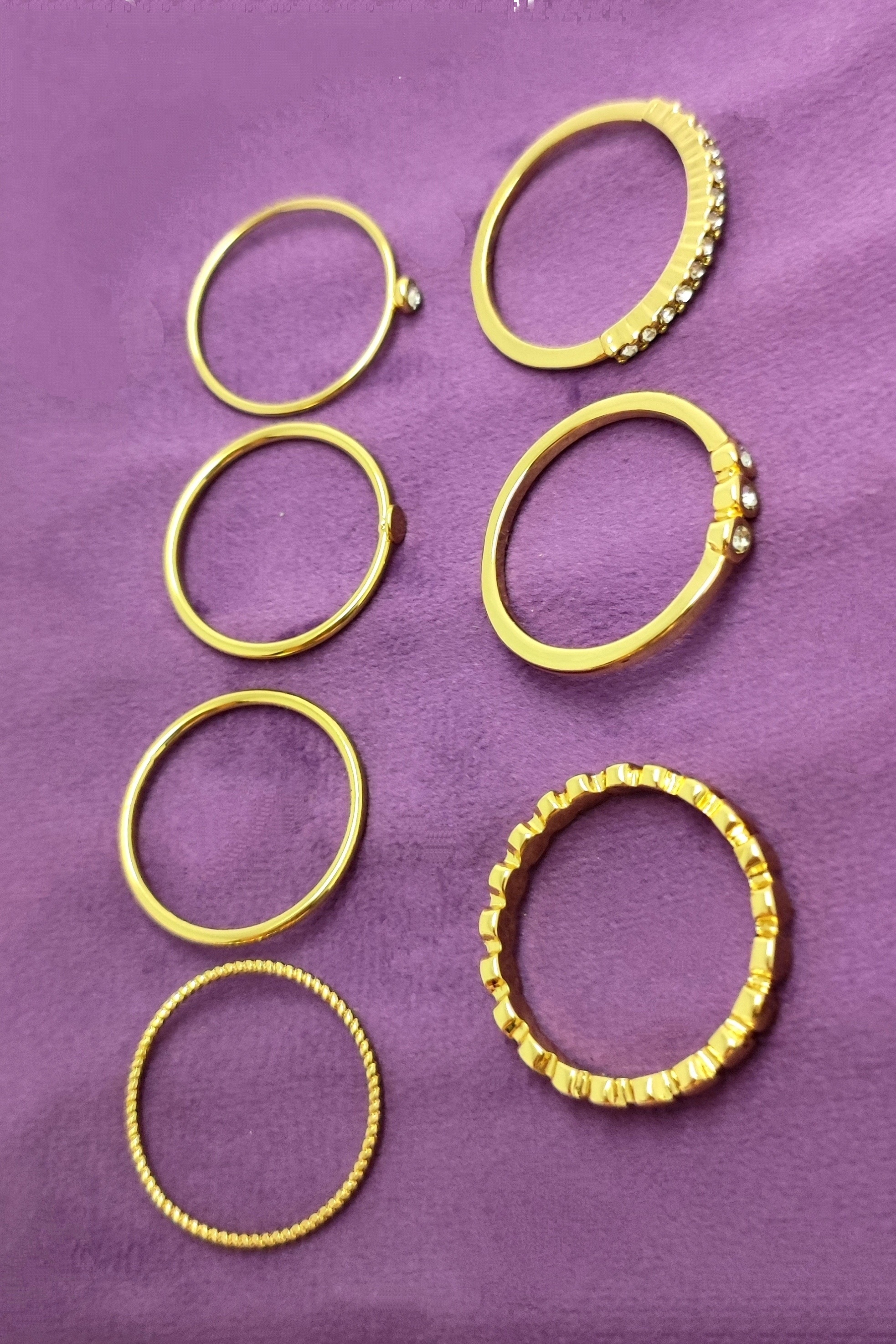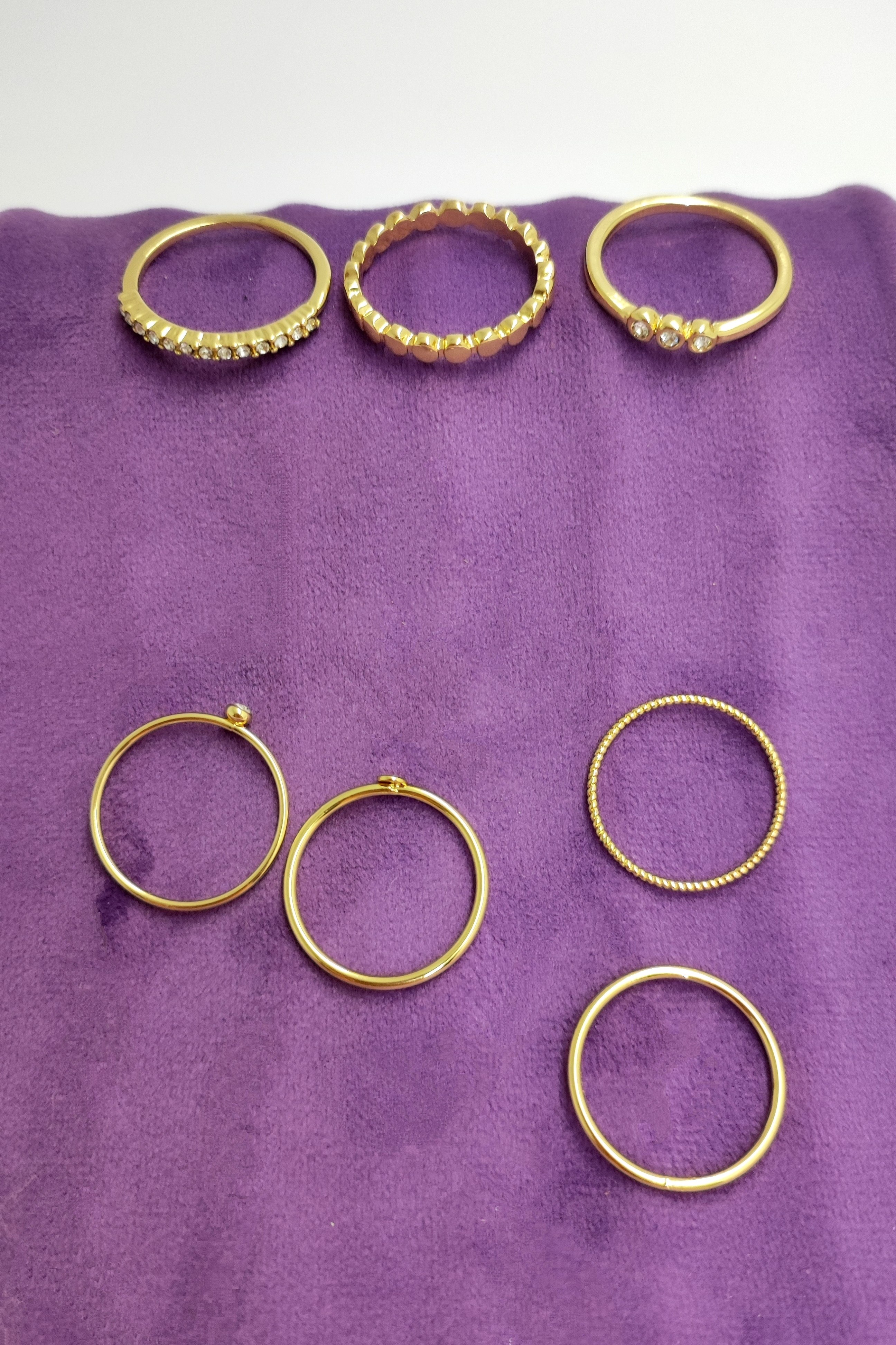 پک انگشتر اورجینال ۷ عددی نگین‌دار و ساده. آبکاری طلا