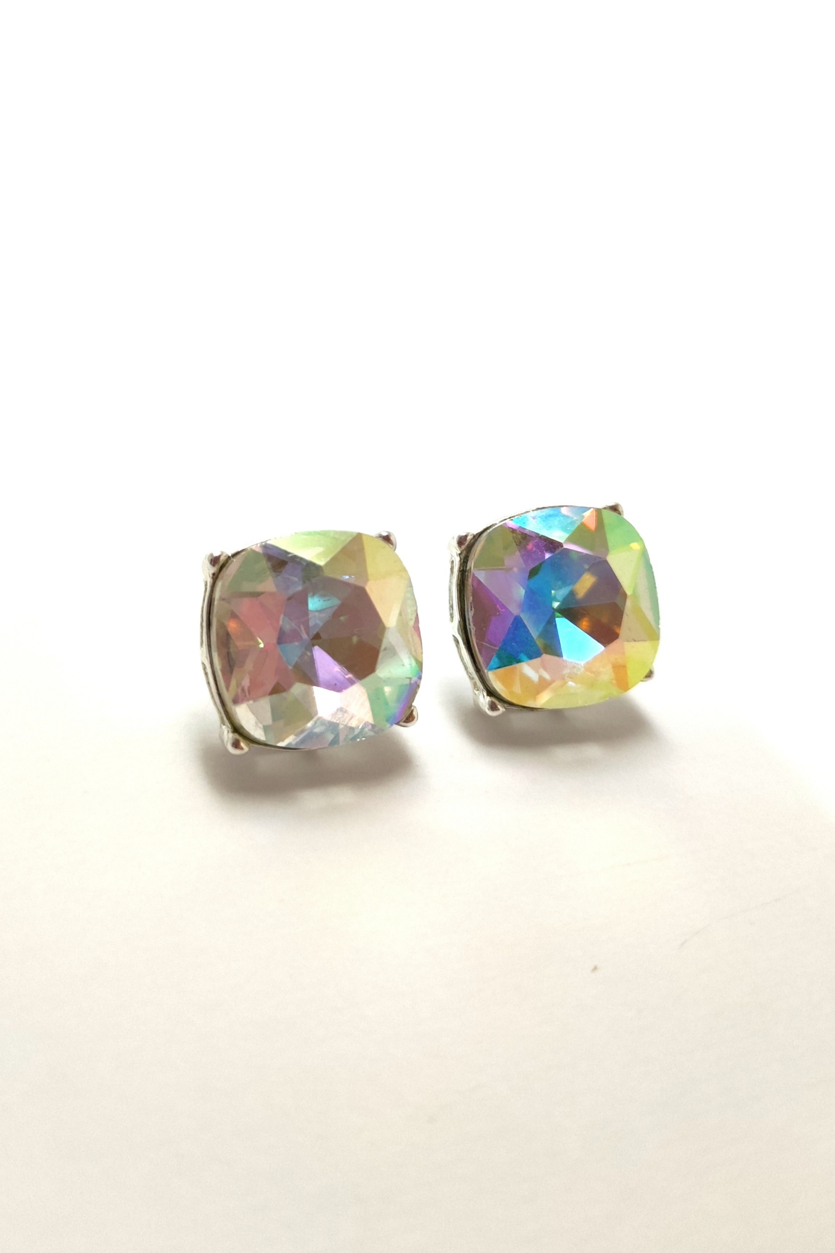 گوشواره اورجینال میخی طرح الماس درشت هفت‌رنگ