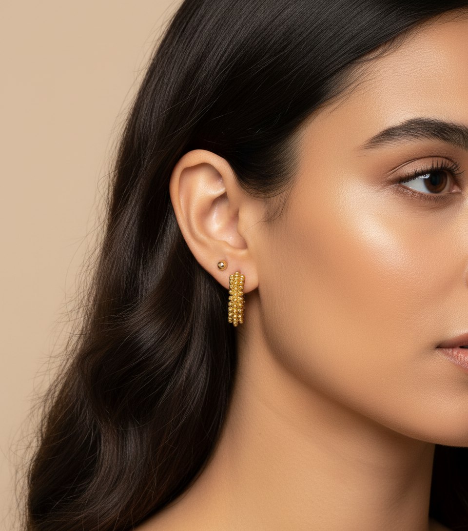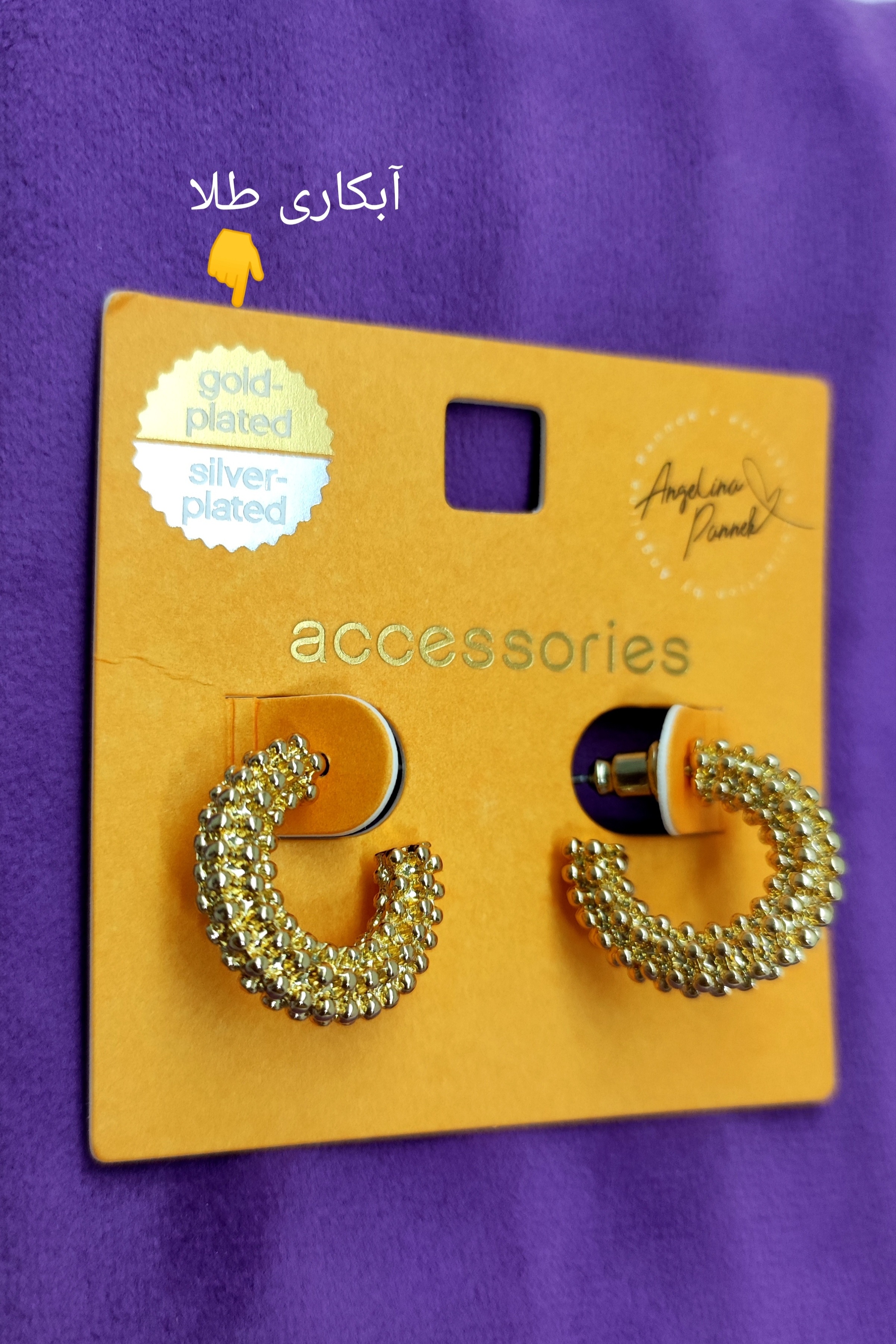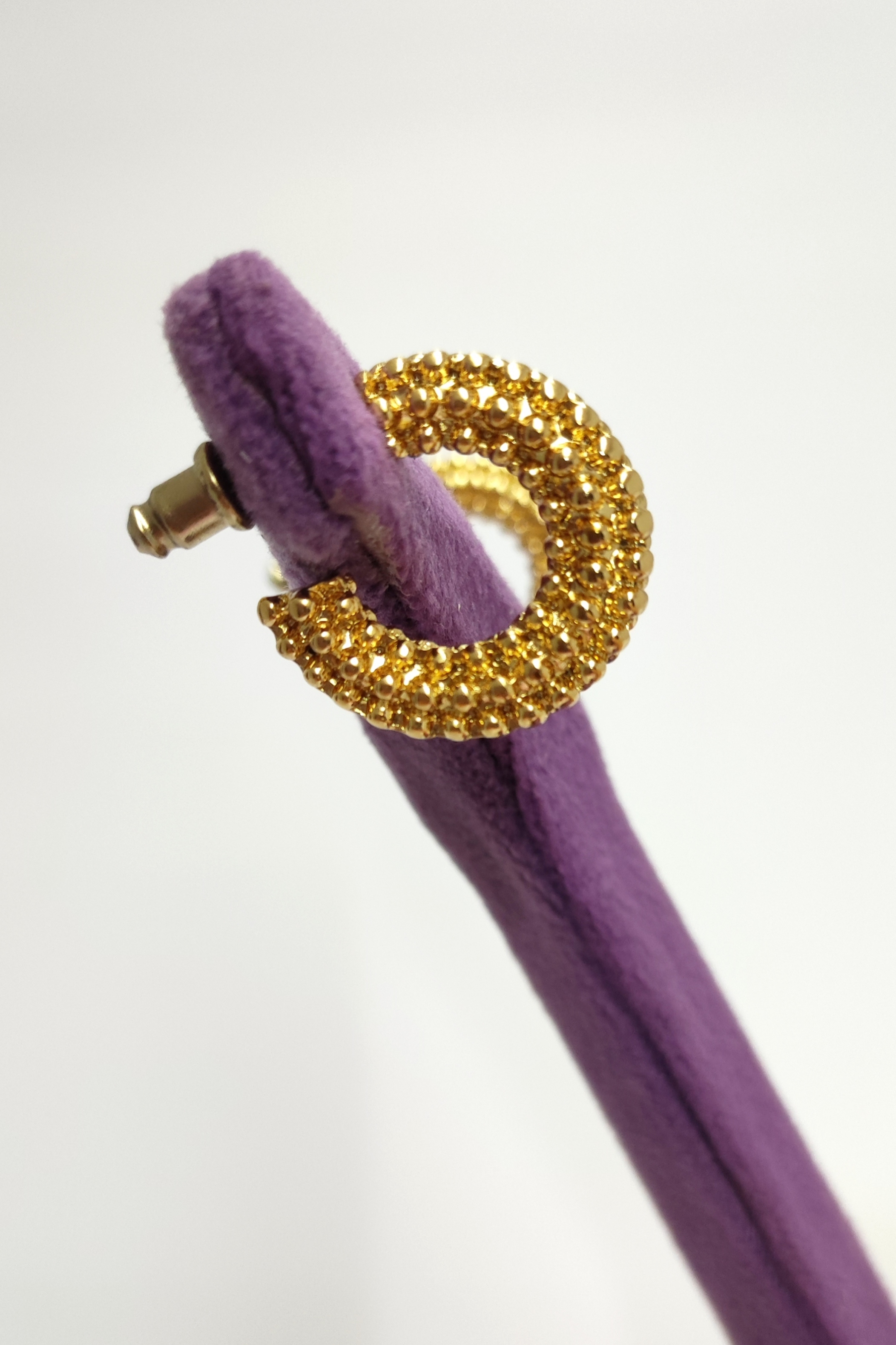 گوشواره اورجینال نیمحلقه میخی طرح برجسته آبکاری طلا
